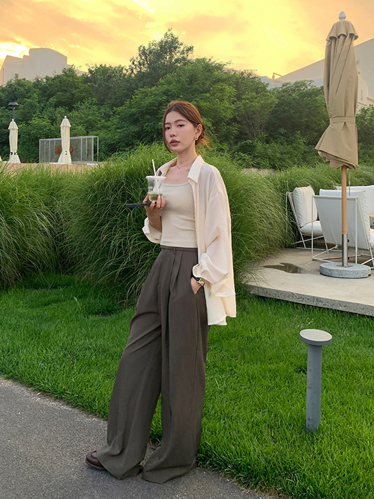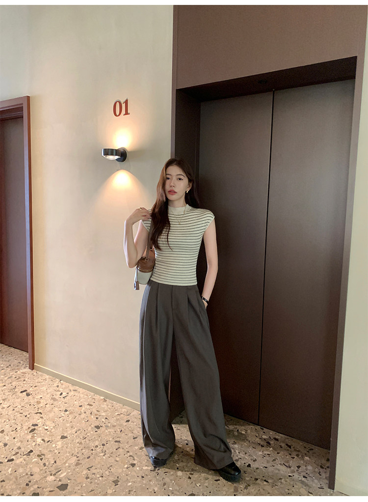 Черные штаны, приталенный костюм, высокая талия, свободный прямой крой