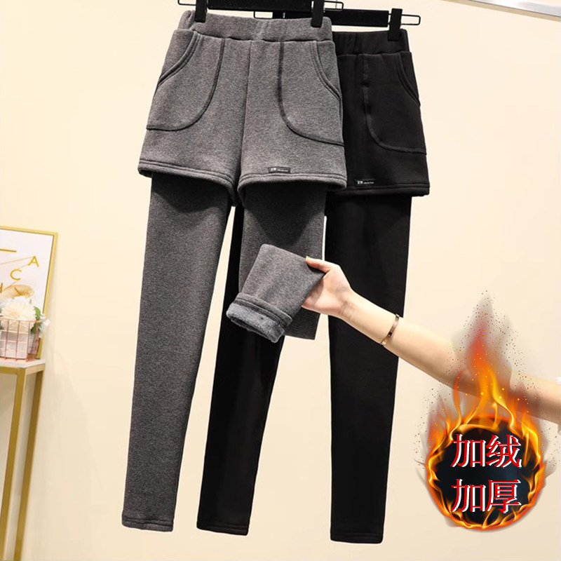 Зимние утепленные демисезонные штаны, спортивные леггинсы с шортами, комплект, юбка, коллекция 2023, большой размер