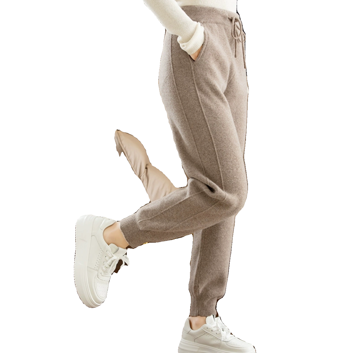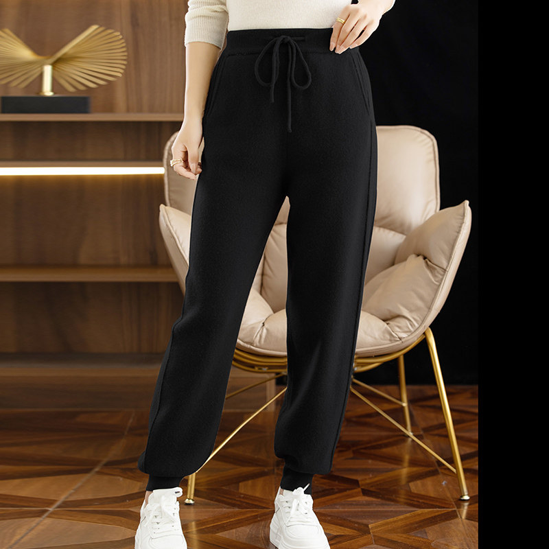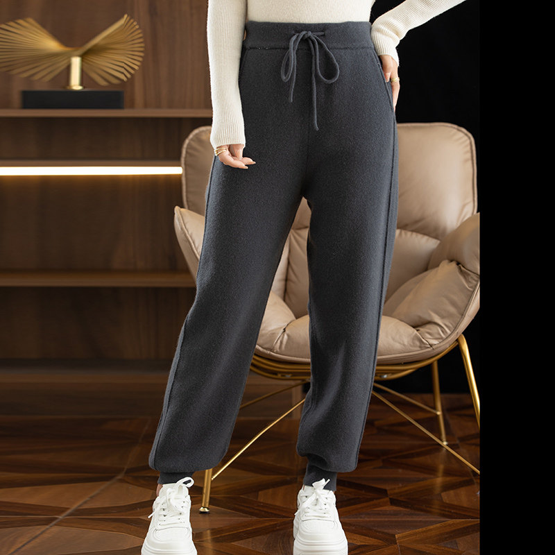 Демисезонные трикотажные приталенные спортивные кашемировые штаны для отдыха, высокая талия, стиль