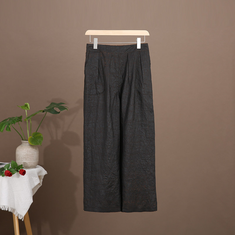 Штаны из старинного материала, высокая талия, свободный прямой крой