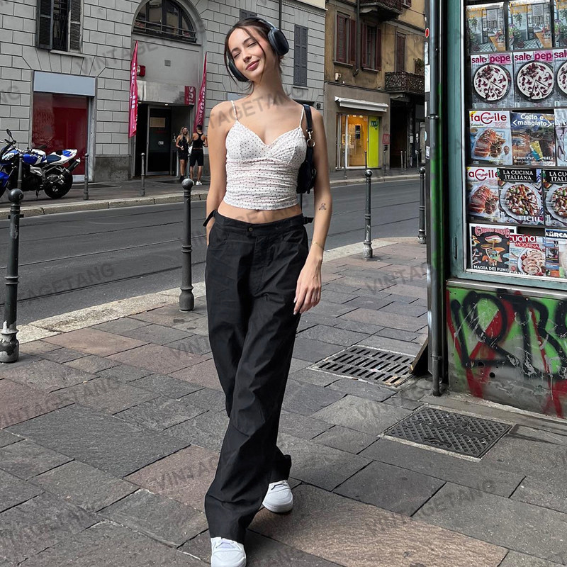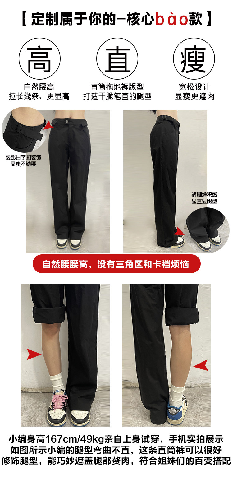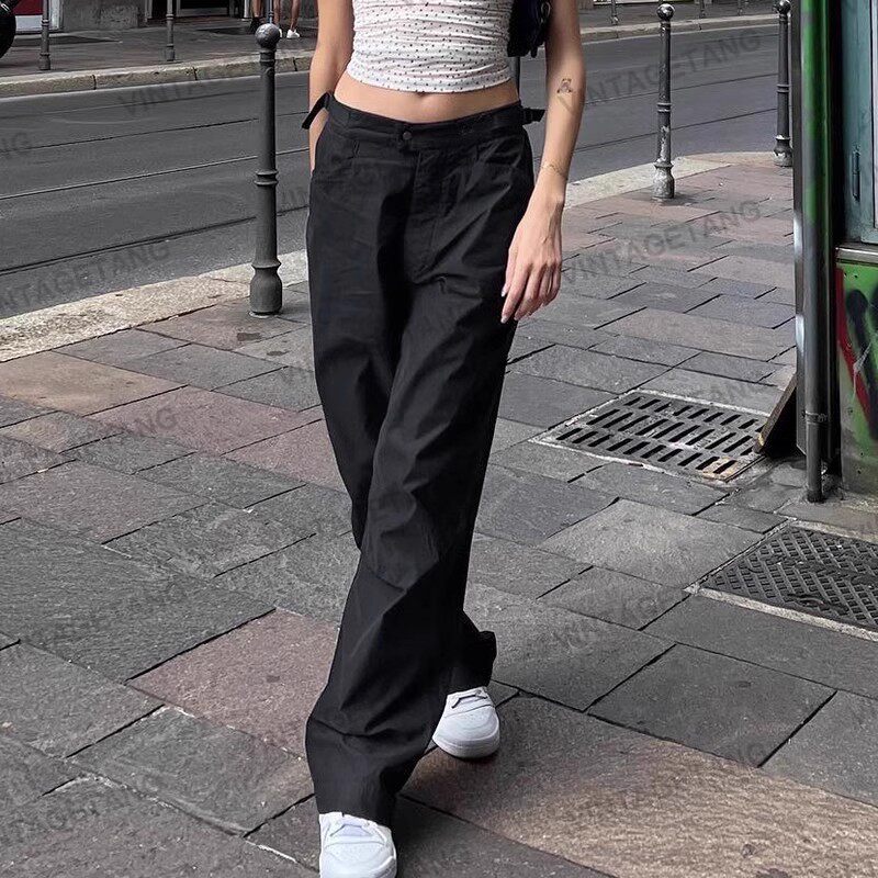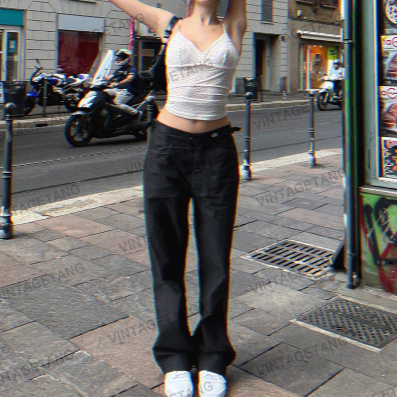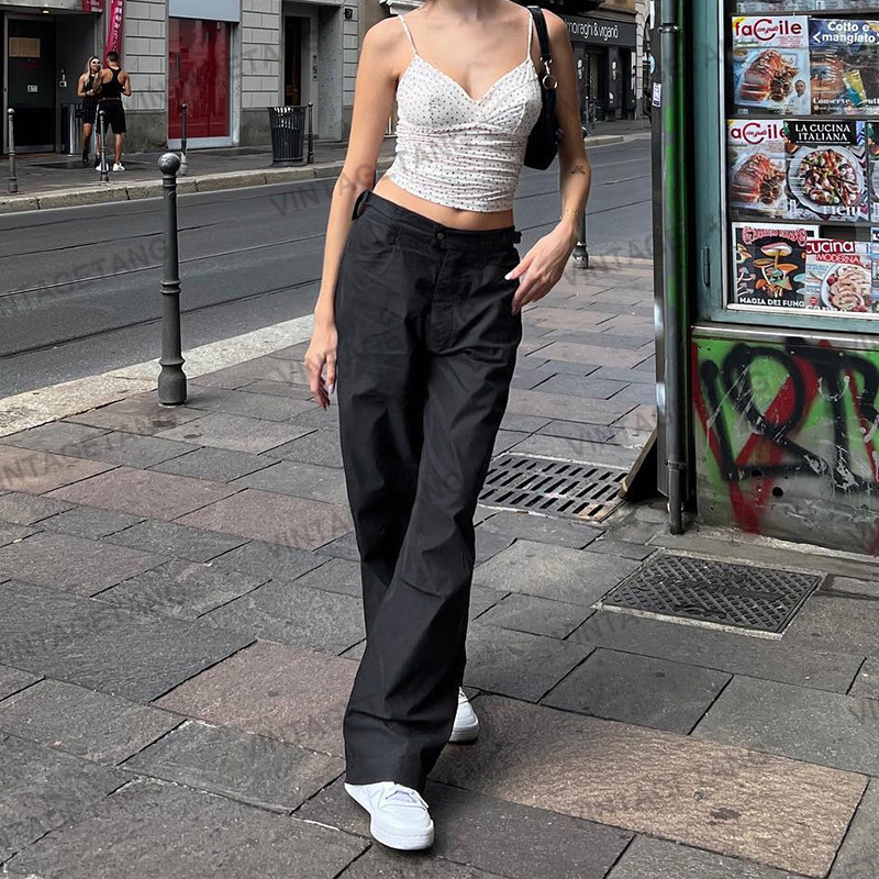 Ретро черные штаны, повседневные брюки, в американском стиле, свободный прямой крой