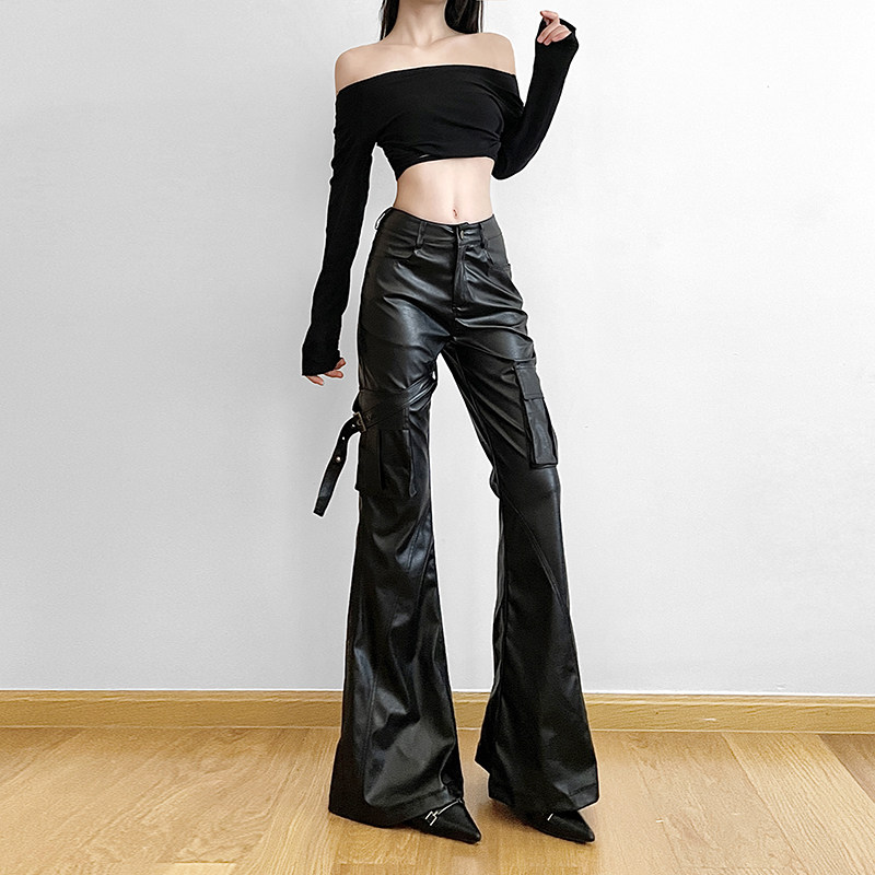 Металлическая приталенная портупея на ногу, полиуретановый мегафон, штаны, европейский стиль, высокая талия