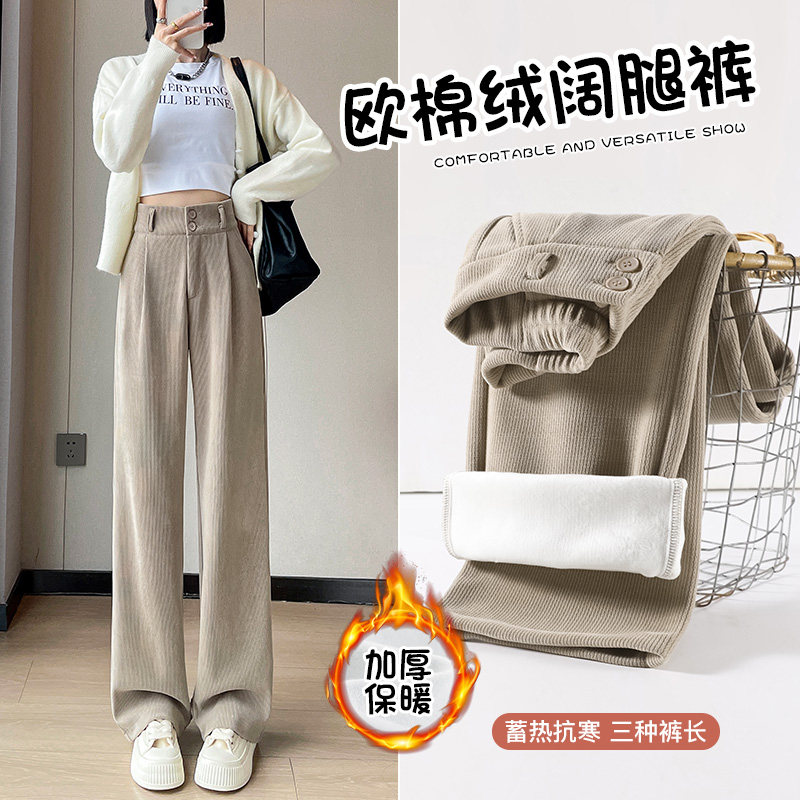 Флисовые демисезонные штаны, хаки вельветовые леггинсы, коллекция 2023, свободный прямой крой