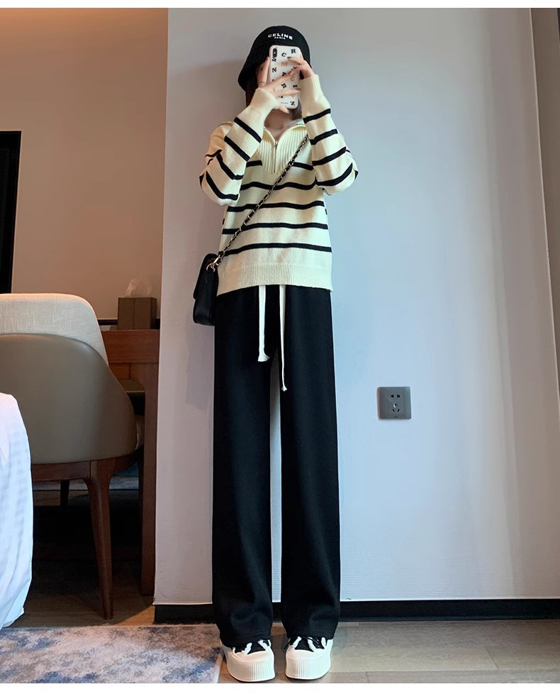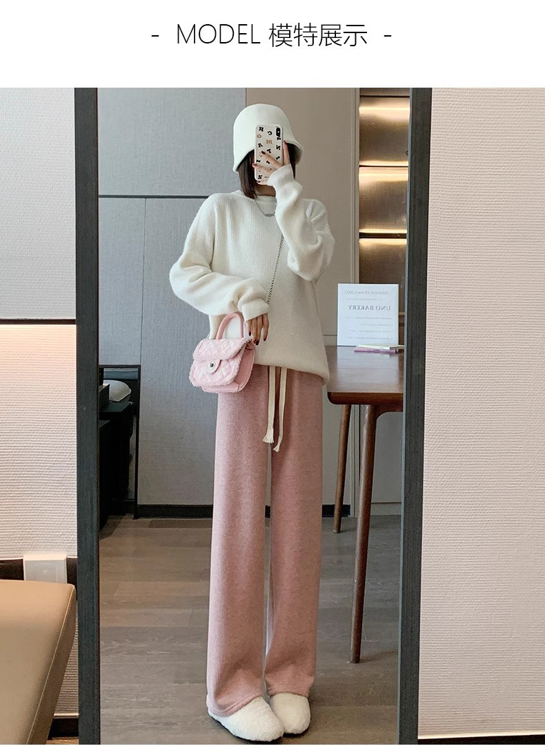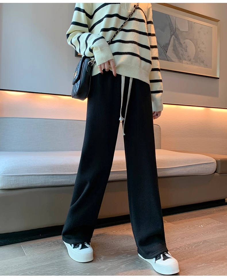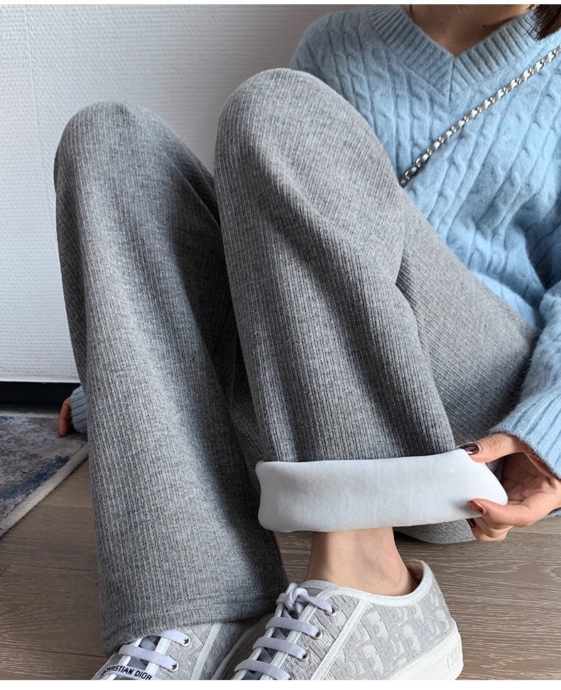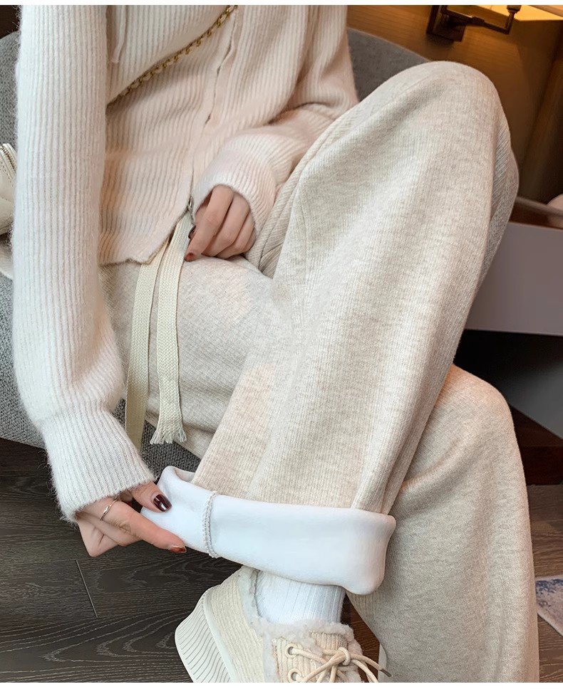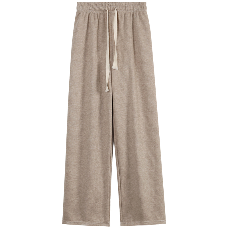 Утепленный клейкий рис, удерживающие тепло трикотажные штаны, коллекция 2023, высокая талия, на шнурках, свободный прямой крой