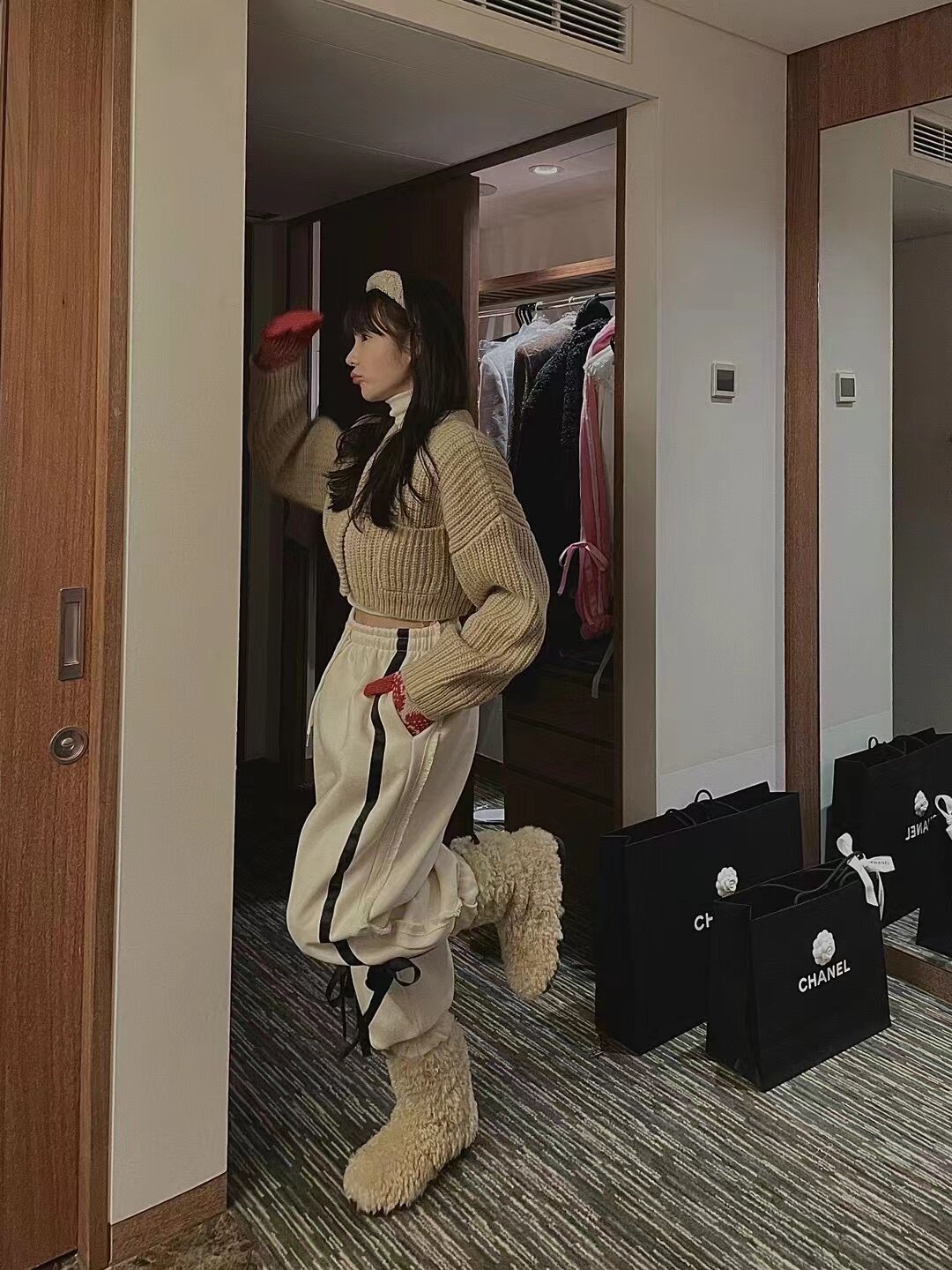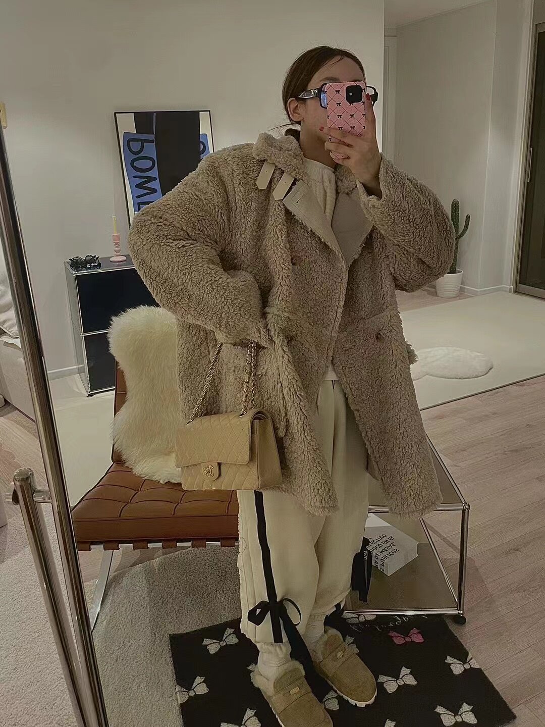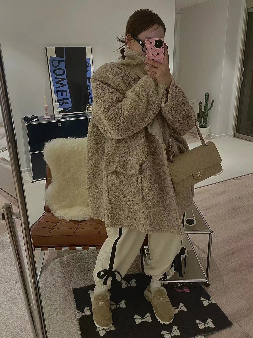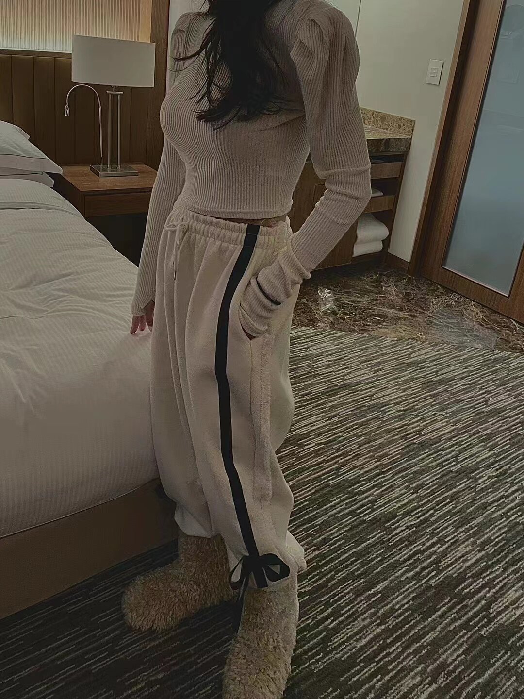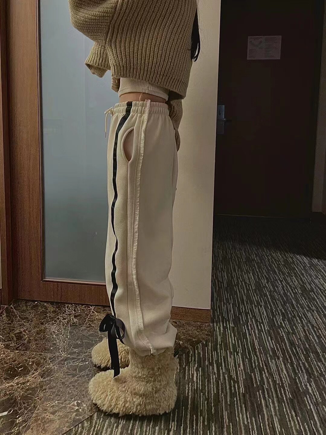 Южнокорейский товар с бантиком, флисовые штаны для отдыха