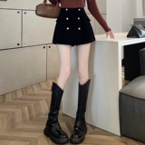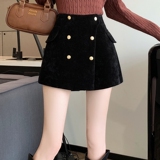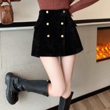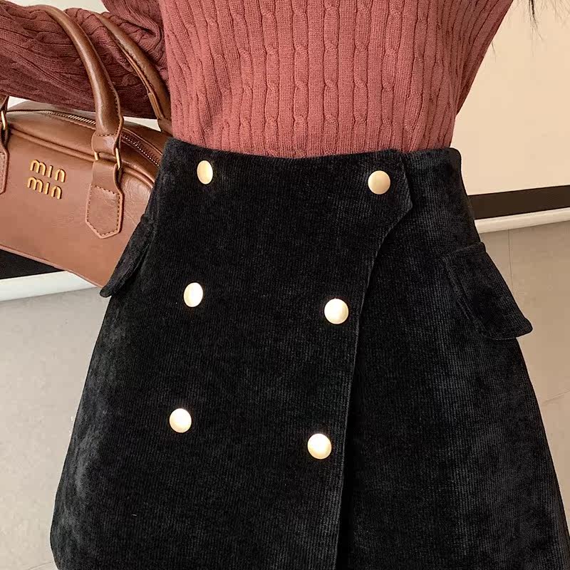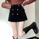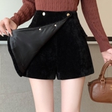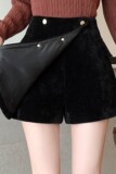 Черные вельветовые демисезонные шорты, приталенные леггинсы, юбка, штаны, А-силуэт, свободный крой
