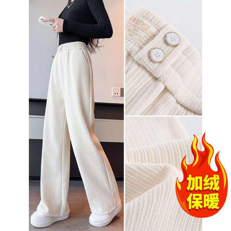 Зимние вельветовые утепленные штаны для отдыха, большой размер, 2023, свободный прямой крой, оверсайз