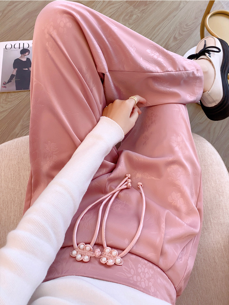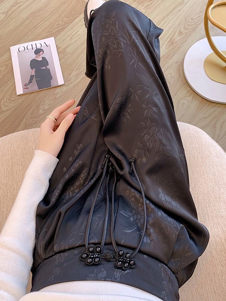 Черные осенние штаны, китайский стиль, свободный прямой крой