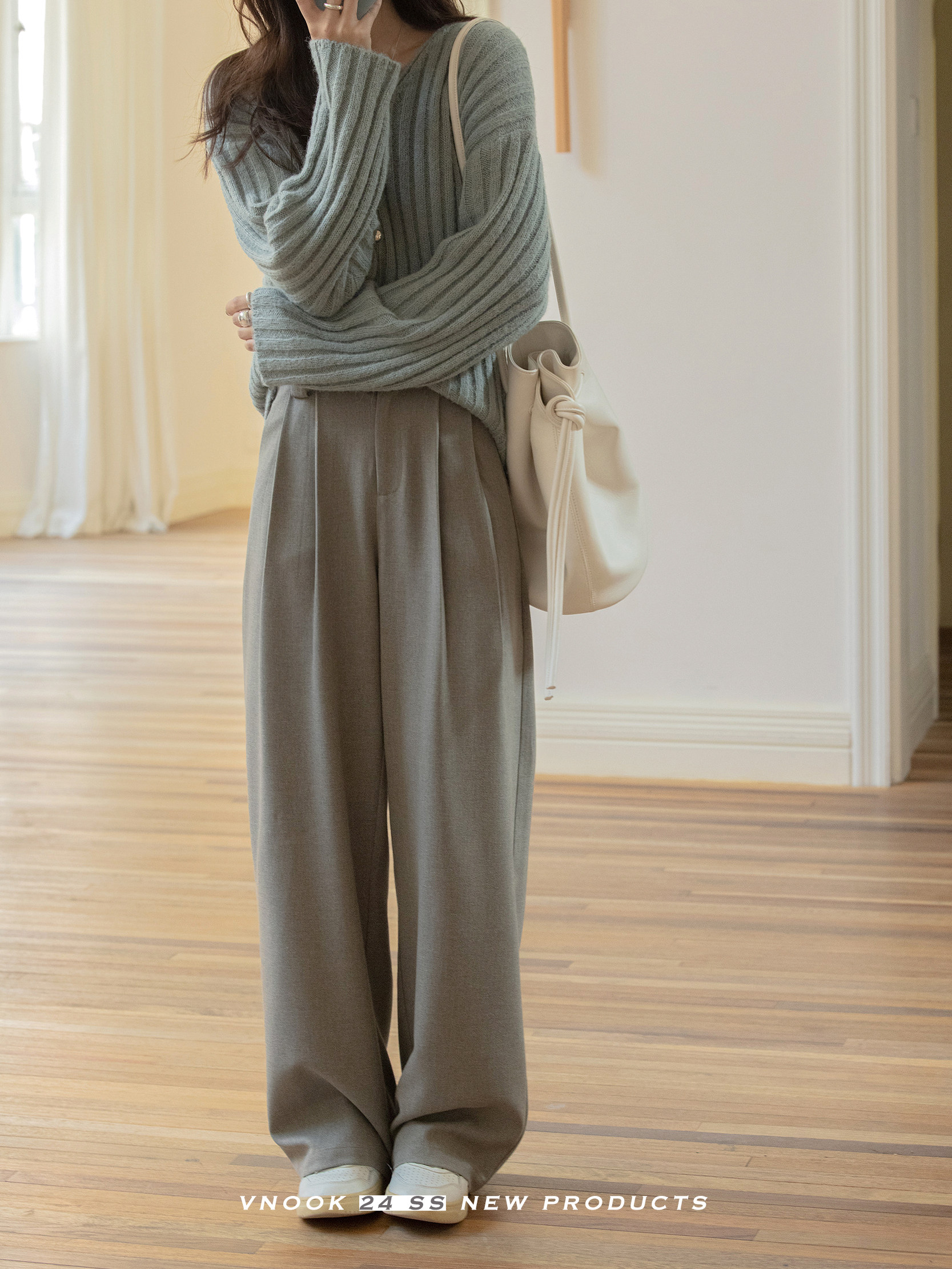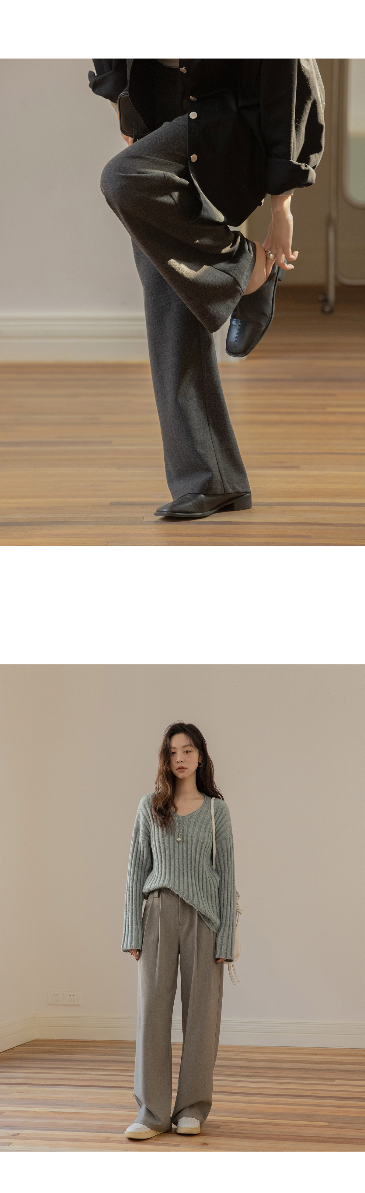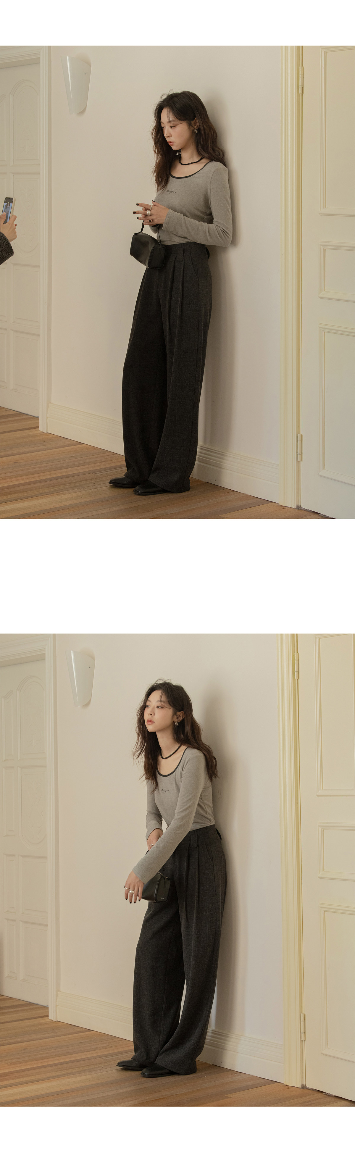 Вертикальные штаныОчень элегантный стиль и длина земли, задняя талия и бедра будут естественнымиИзменить тип бедра