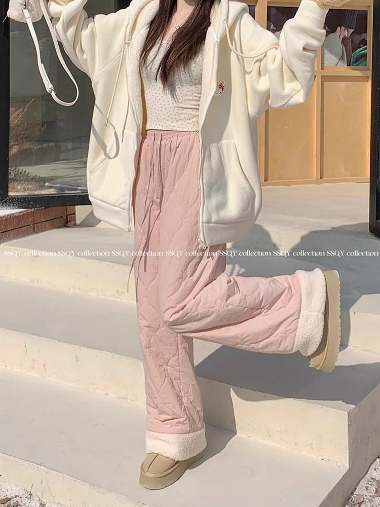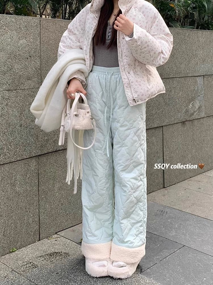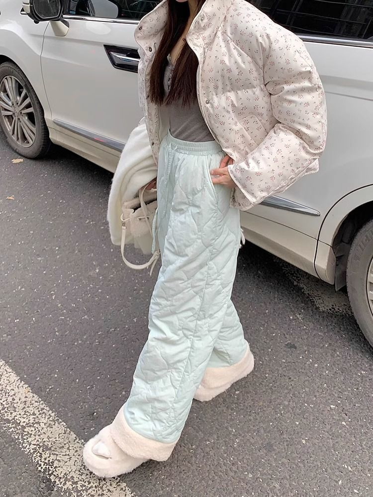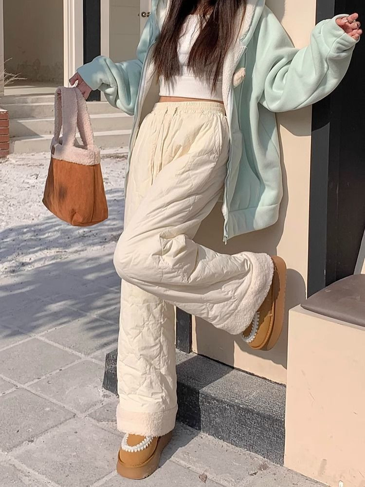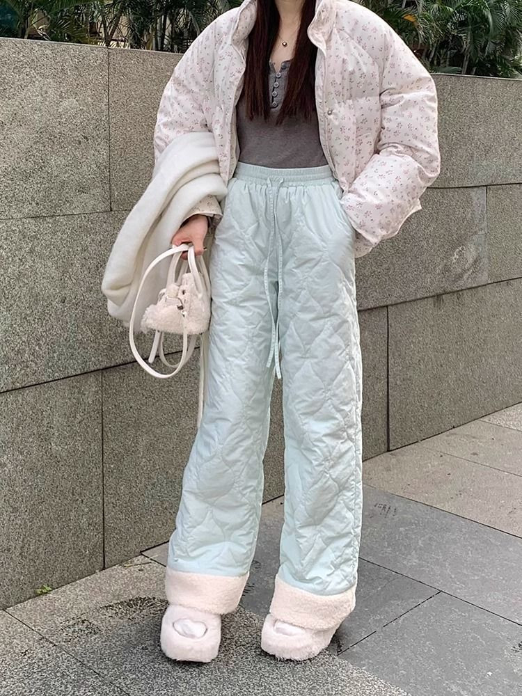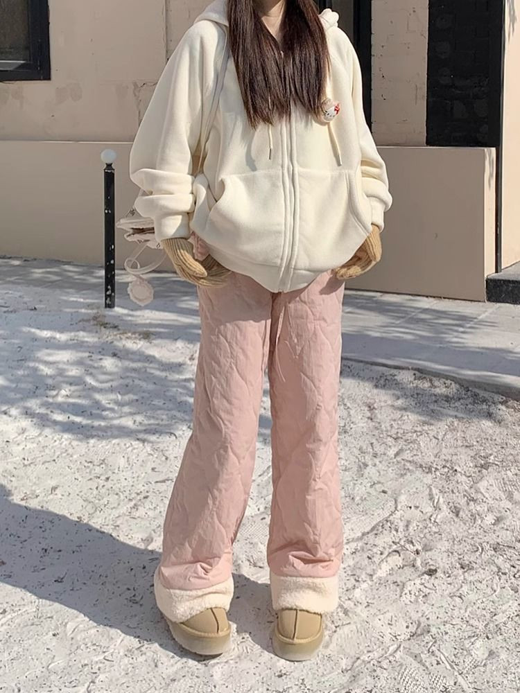 Утепленные бархатные зимние лыжные штаны с пухом, 40, свободный прямой крой