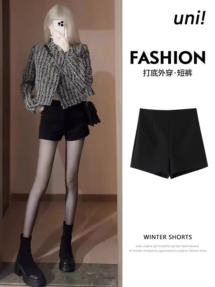 Черные цветные шорты, штаны, джинсы с начесом, леггинсы, высокая талия, А-силуэт