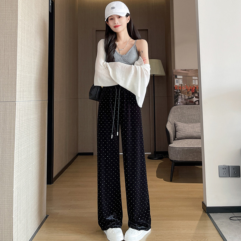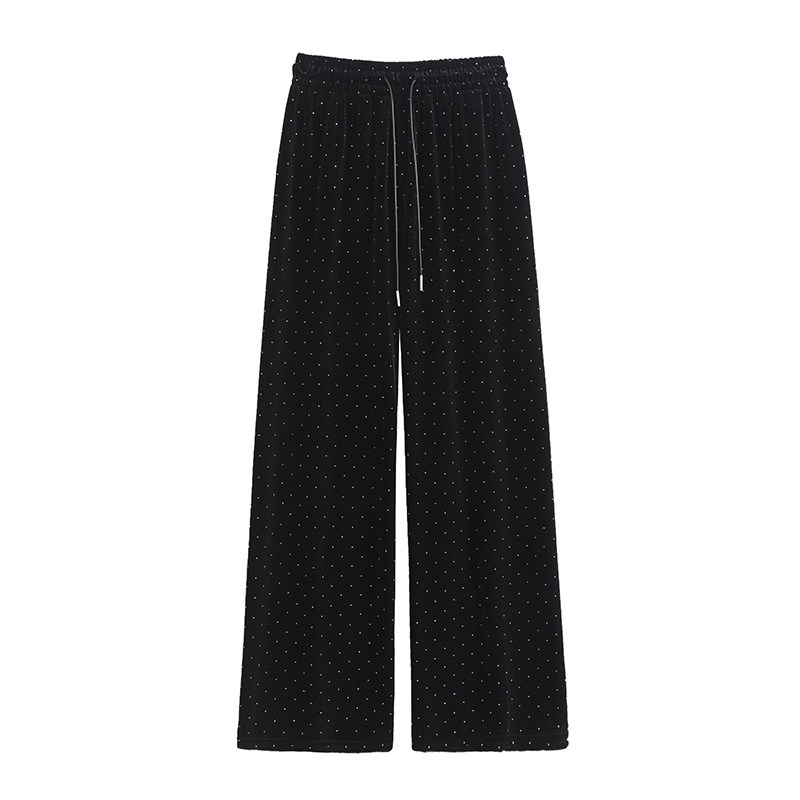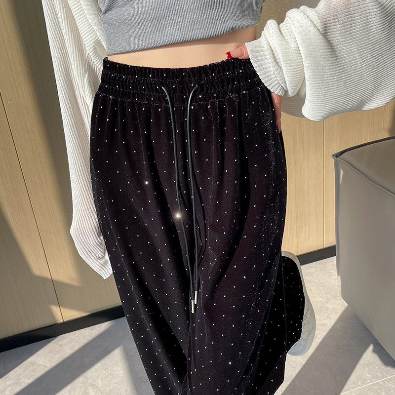 Черные бархатные осенние приталенные штаны, эластичная талия, свободный прямой крой