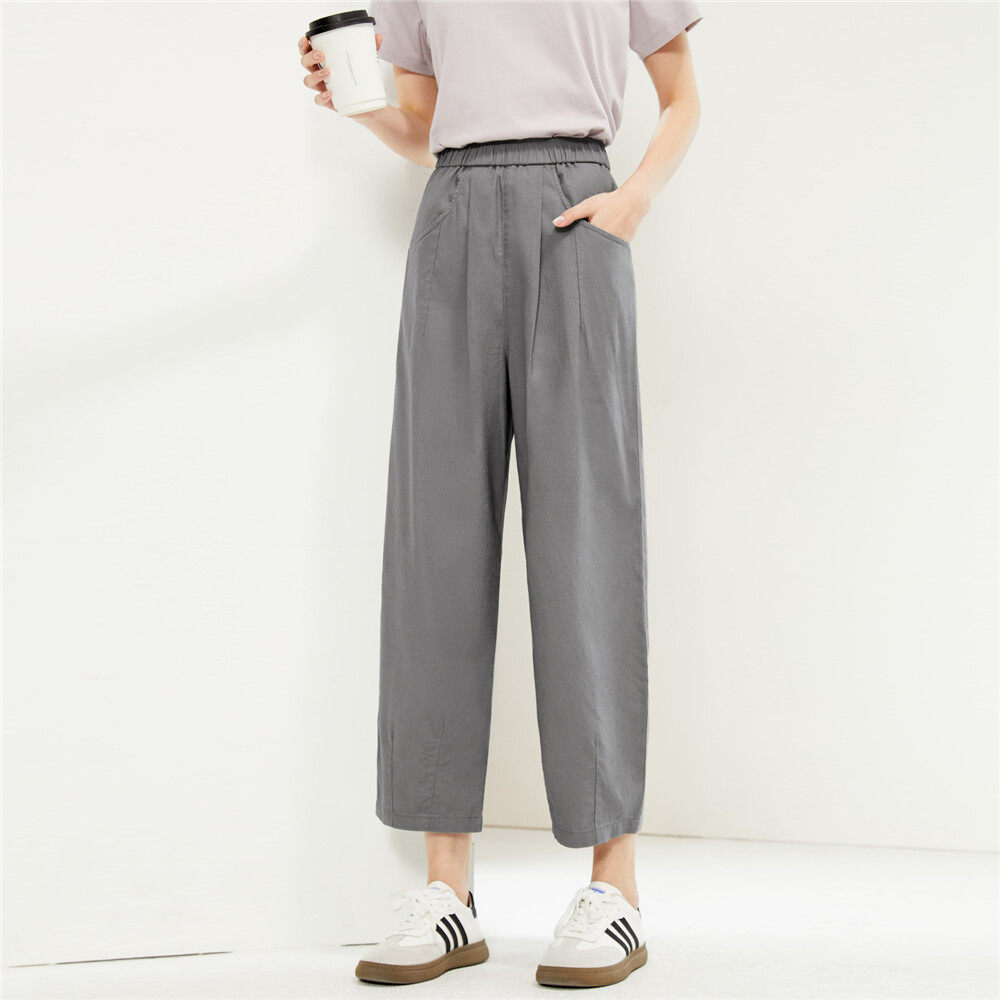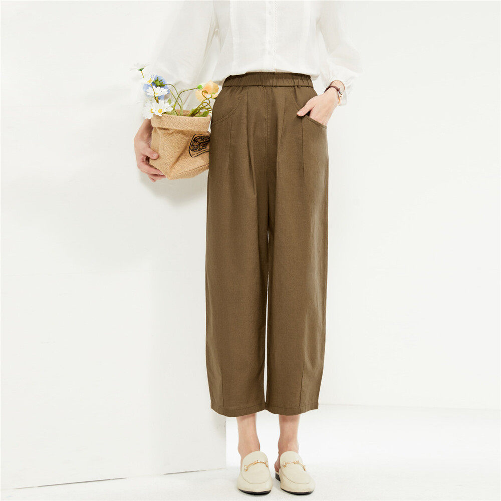 Летние штаны, из хлопка и льна, эластичная талия, свободный крой