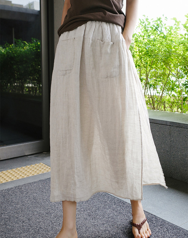 Ретро юбка, тонкие штаны, комплект, из хлопка и льна, свободный прямой крой