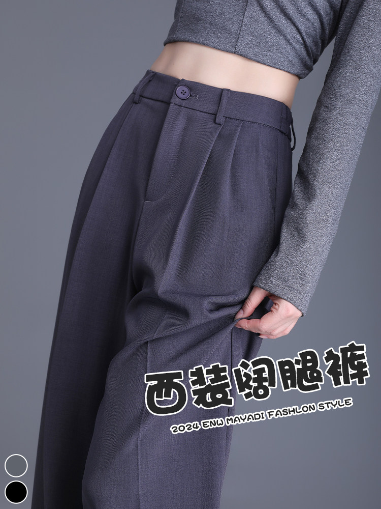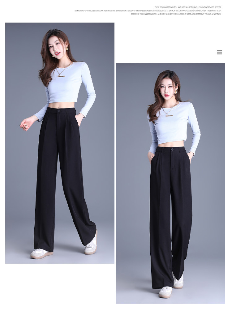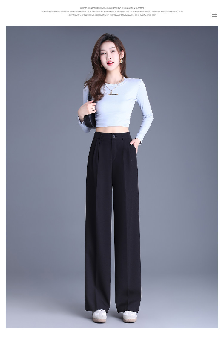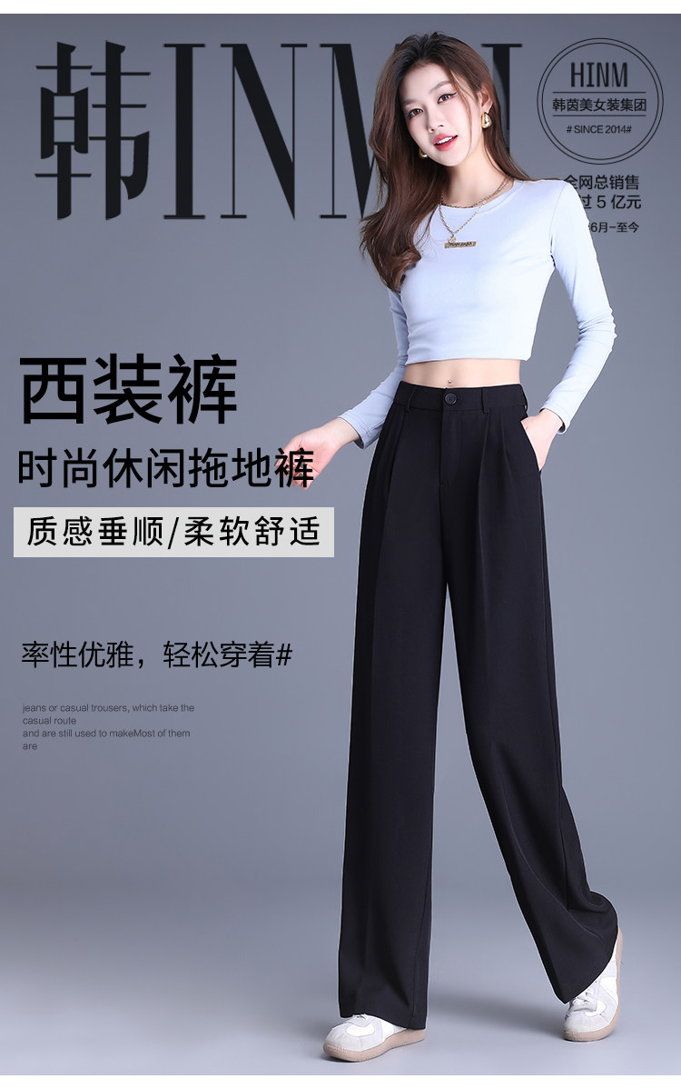 Костюм, осенние черные штаны для отдыха, высокая талия, свободный прямой крой, изысканный стиль