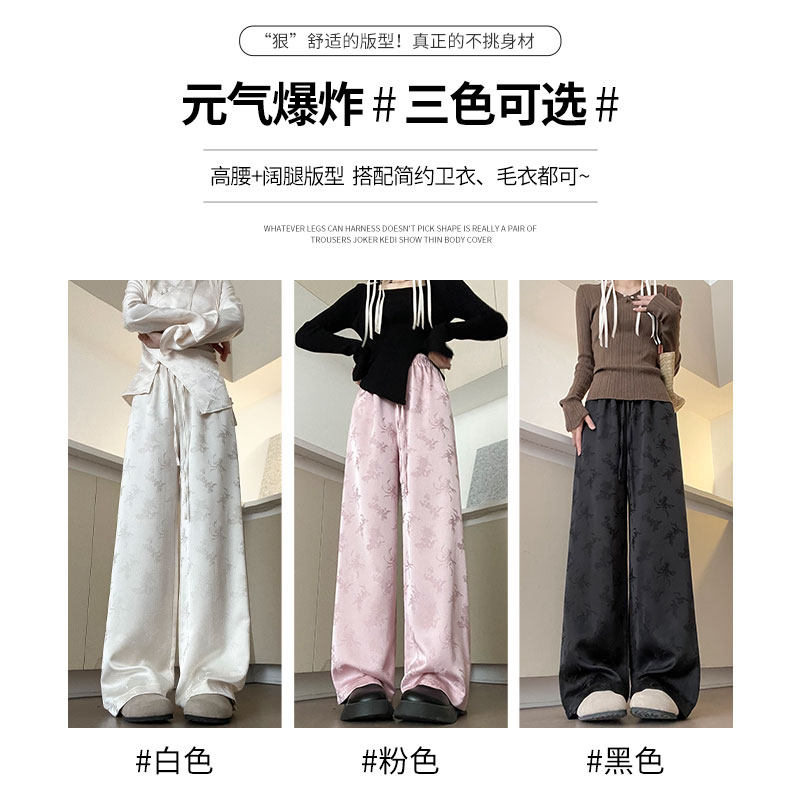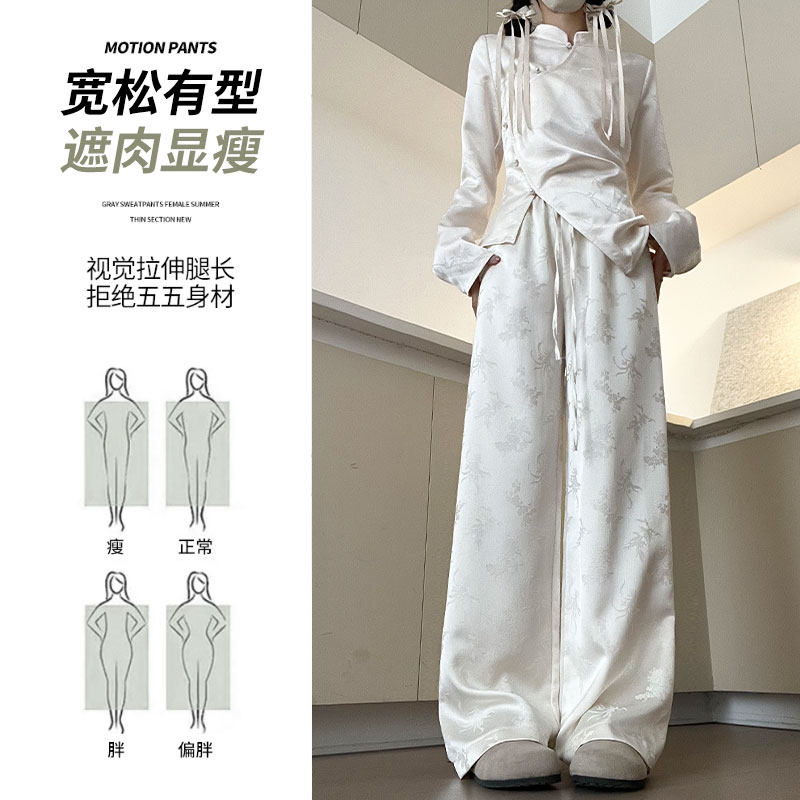 Осенние белые штаны для отдыха, китайский стиль, высокая талия, свободный прямой крой, оверсайз