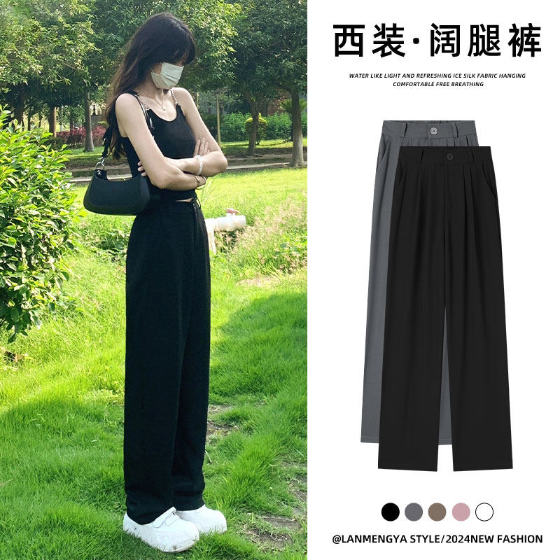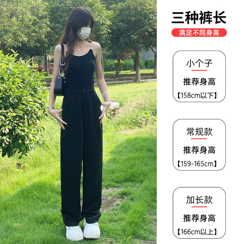 Черный костюм, осенние демисезонные штаны, высокая талия, изысканный стиль, свободный прямой крой