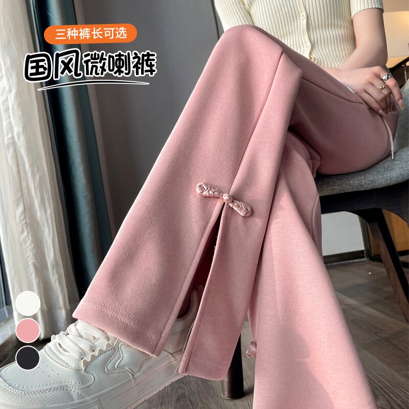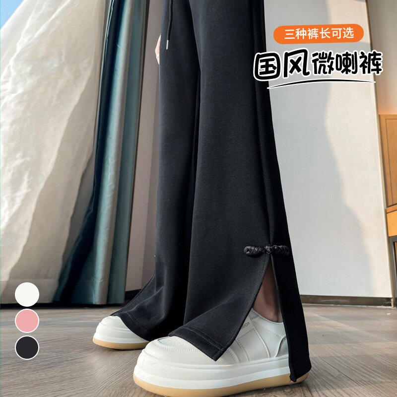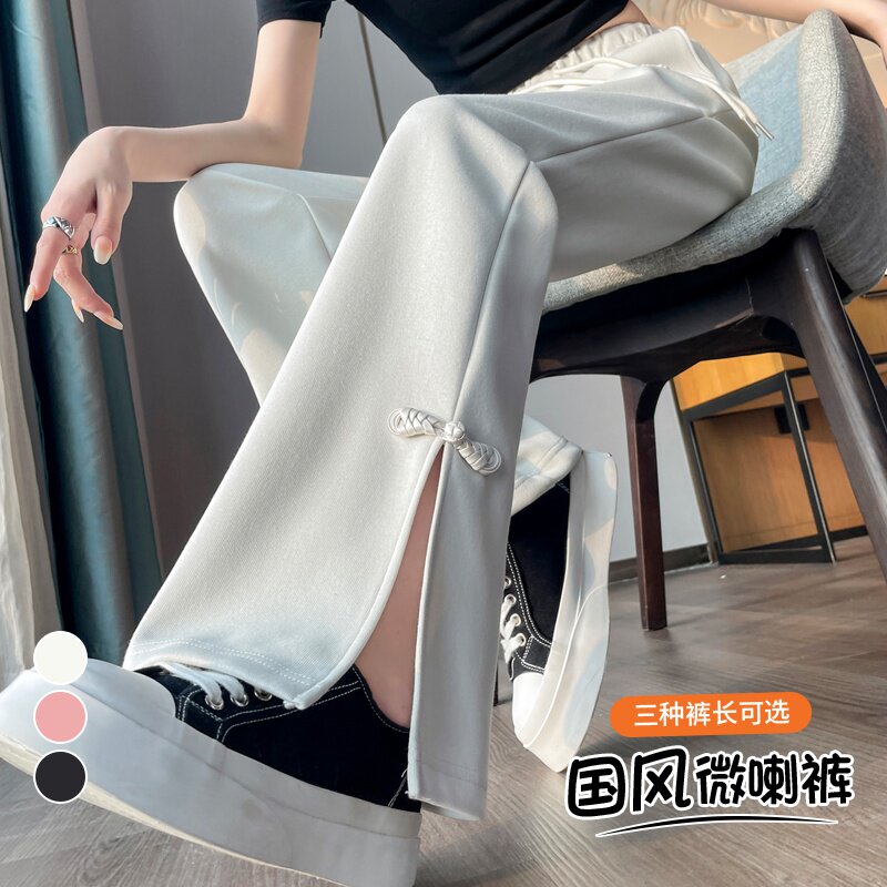 Черные весенние летние штаны, костюм, штаны-клёш, китайский стиль, свободный крой