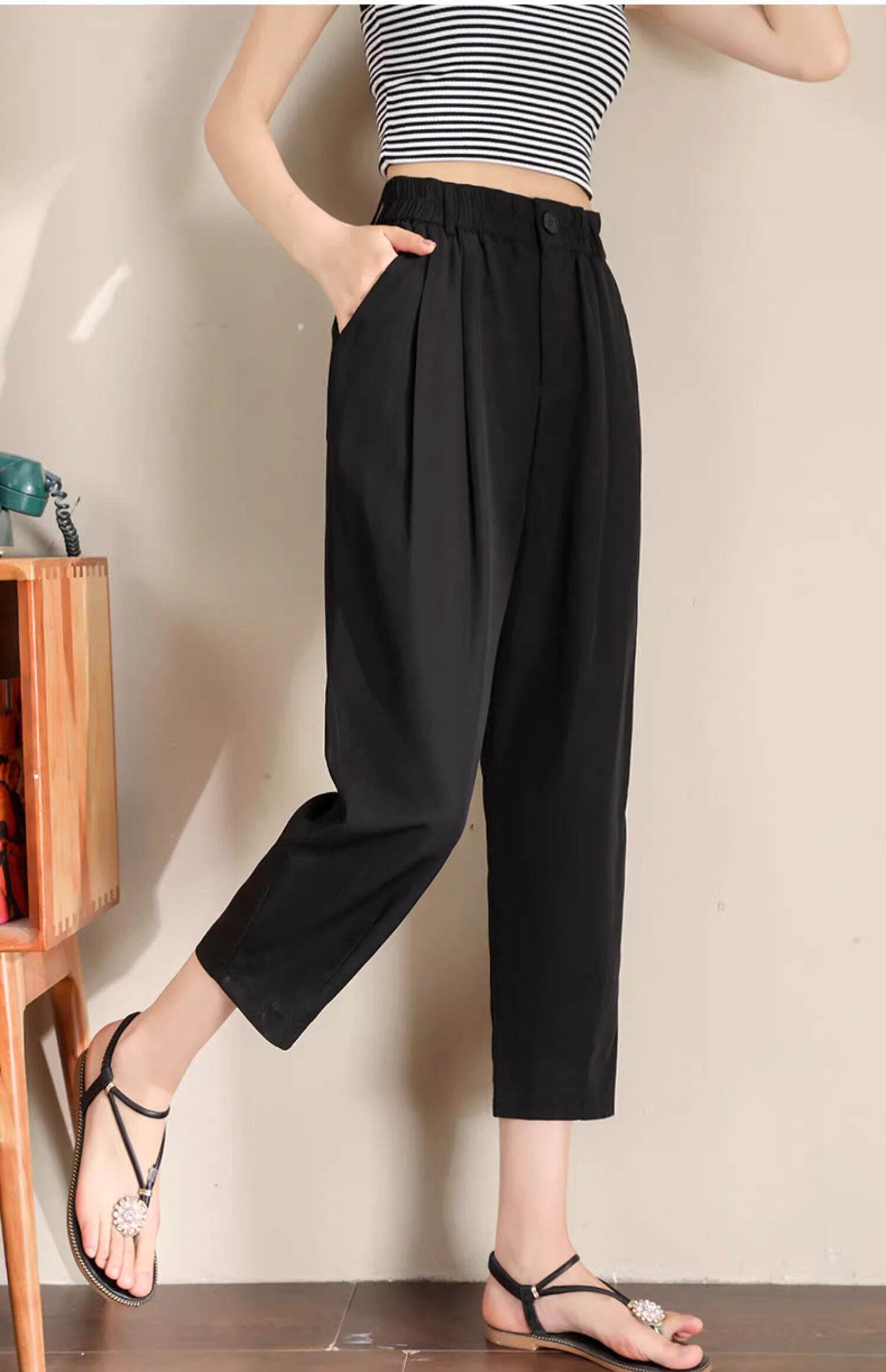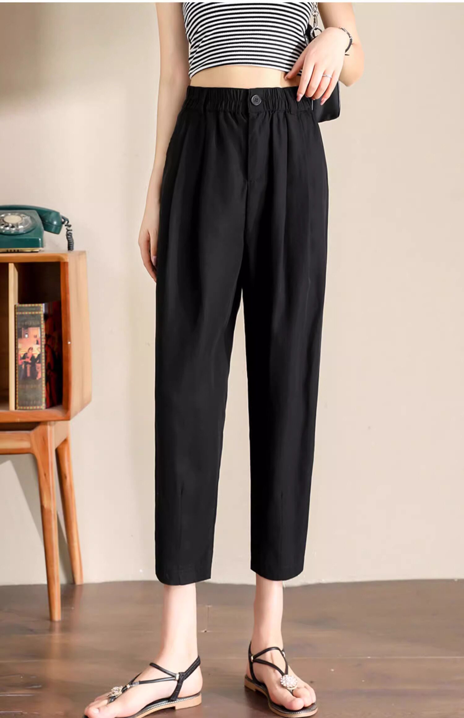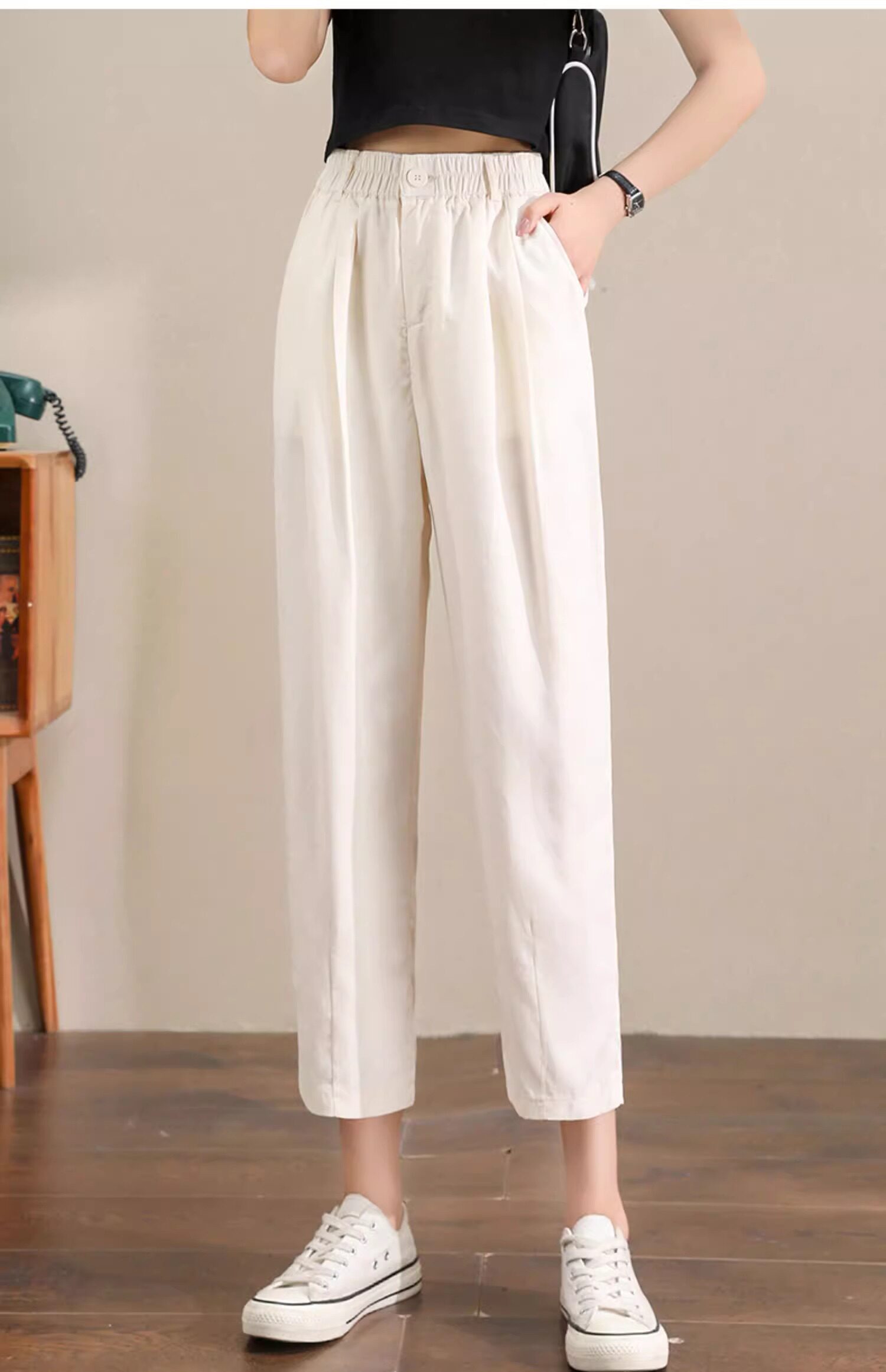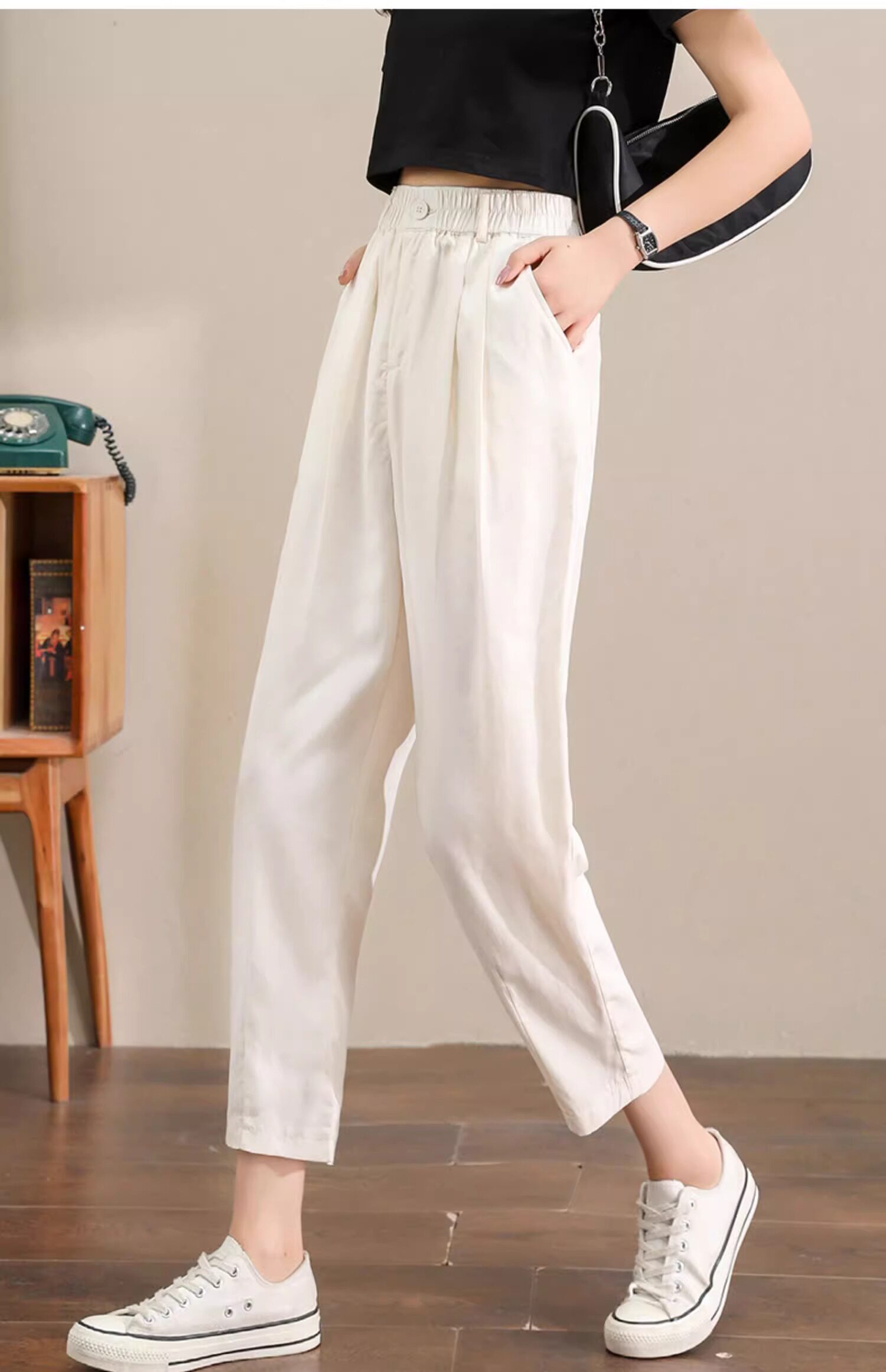 Женщины с хаки крошечные шелковые хлопковые и льняные брюки летом, высокая талия, выглядящая в воздухопроницаемых мани миниатюрных брюк для льня