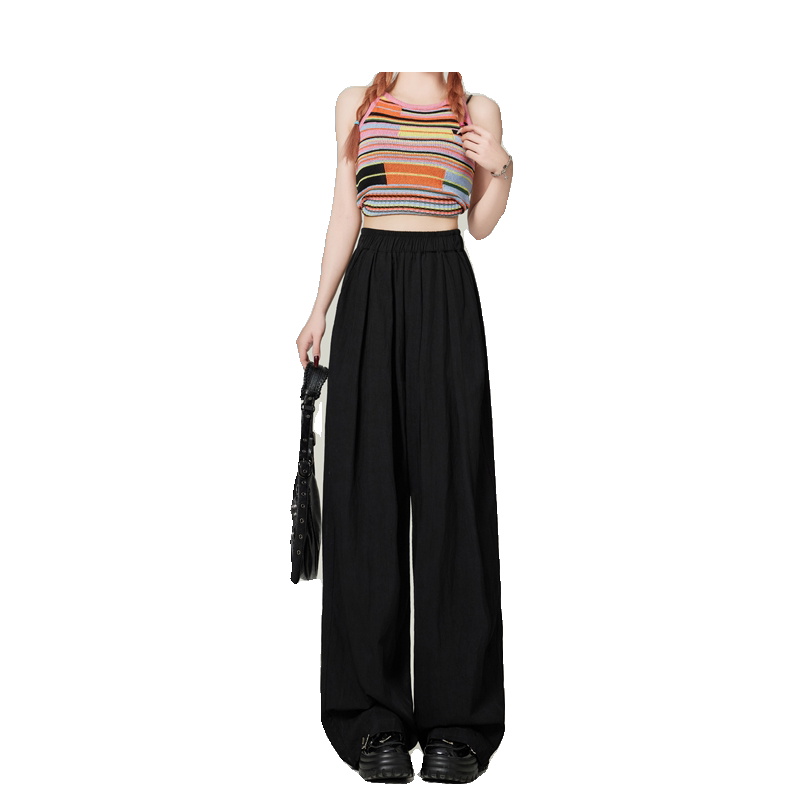Летние тонкие черные штаны, повседневные брюки, высокая талия, по фигуре