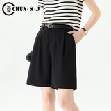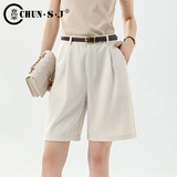 Бежевый пиджак классического кроя, шорты, приталенные штаны для отдыха, высокая талия