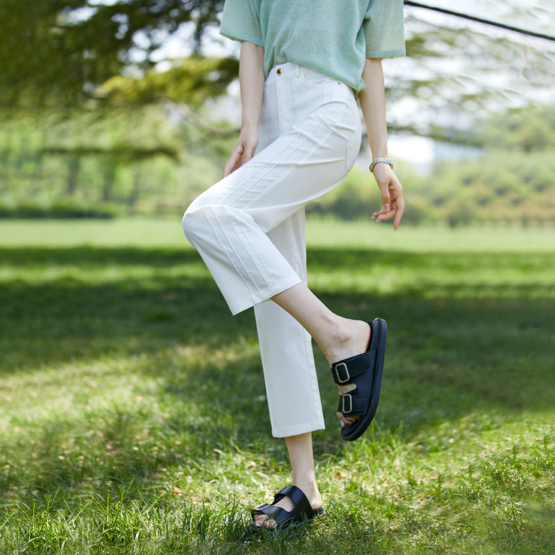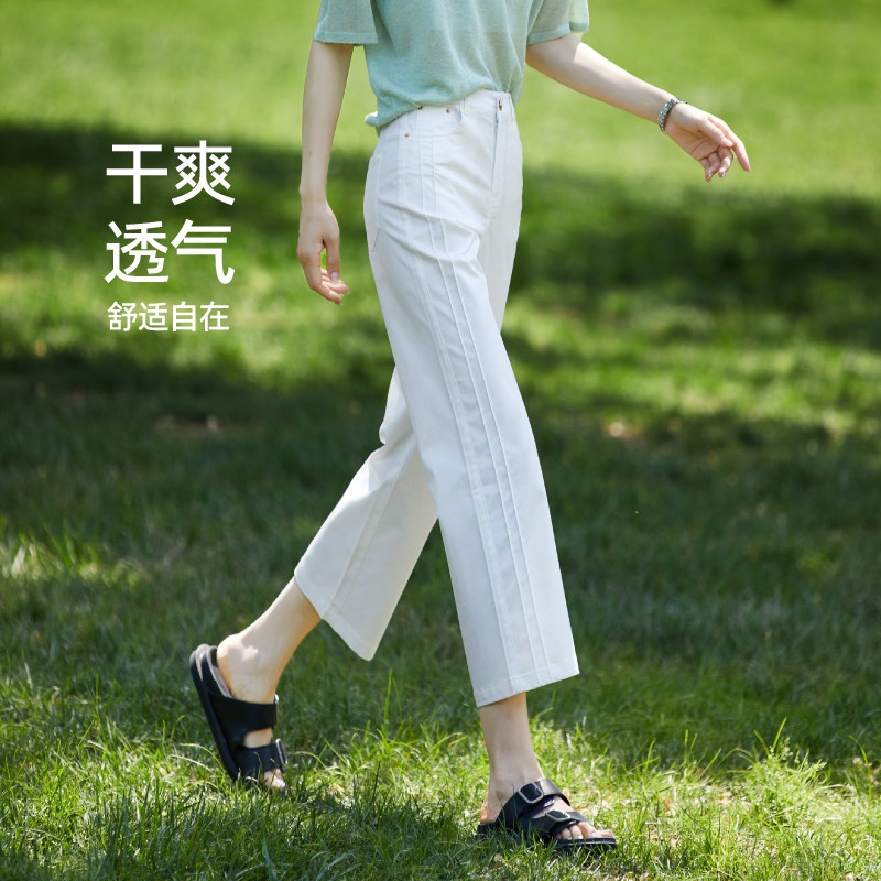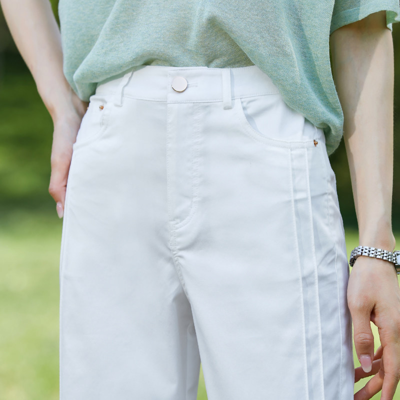 Белые тонкие штаны, свободный прямой крой, высокая талия