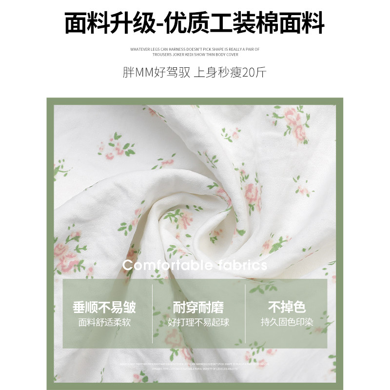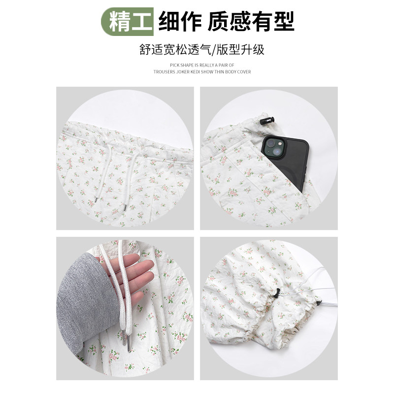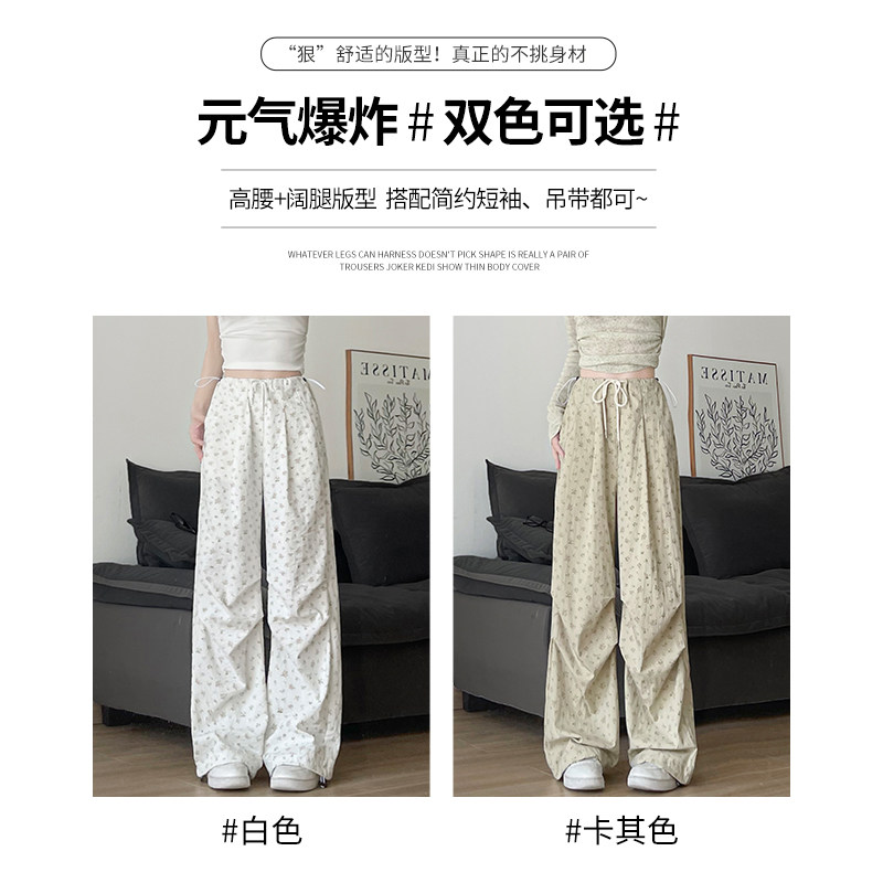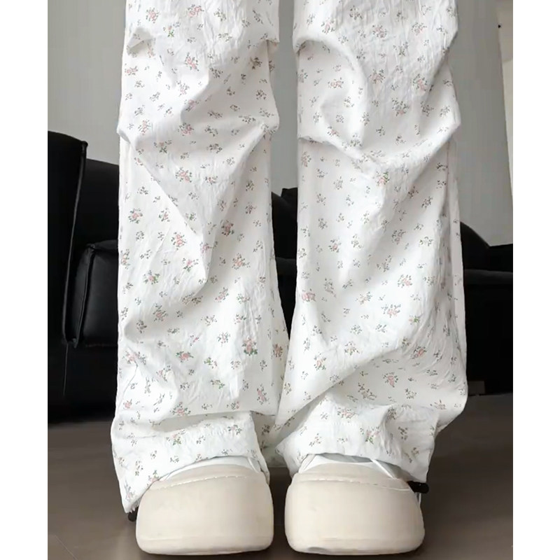 Белые штаны, быстросохнущий парашютист, цветочный принт, высокая талия, в американском стиле