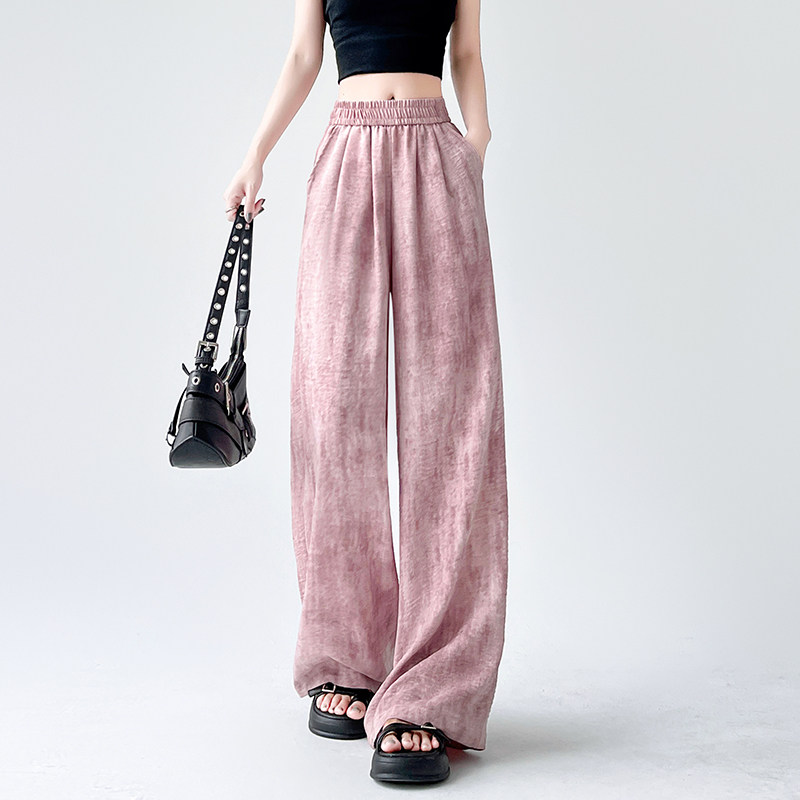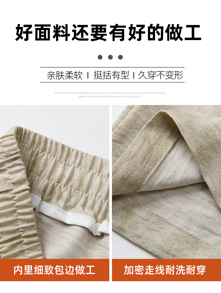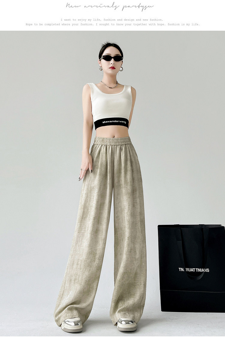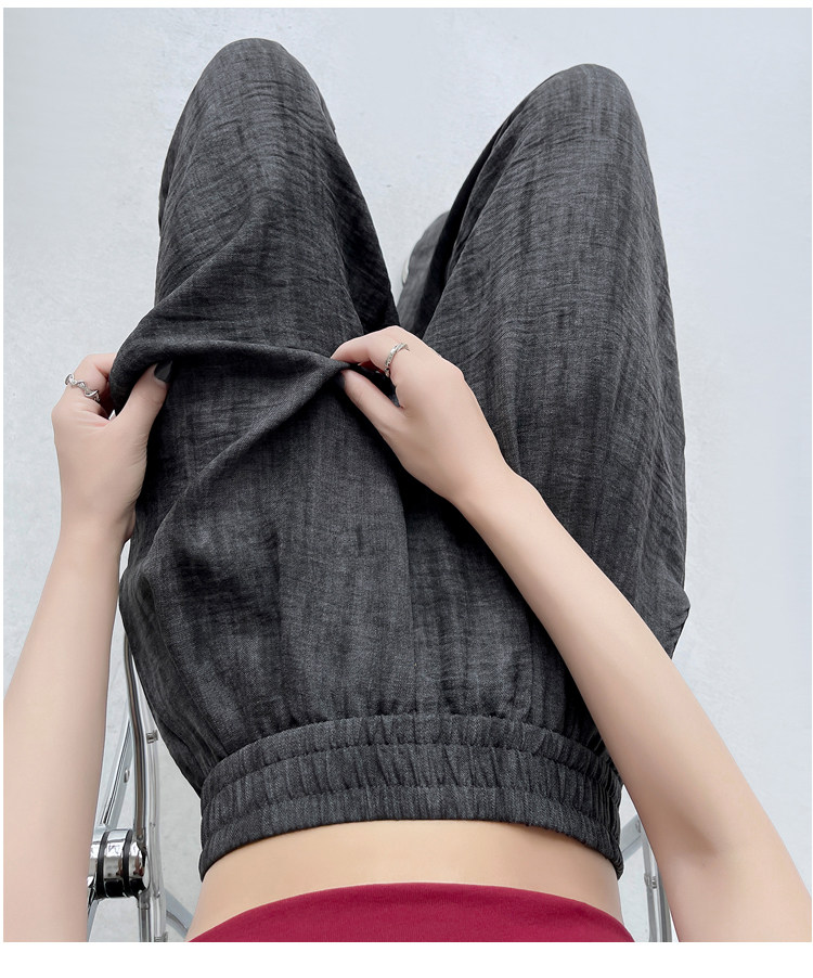 Шелковые тонкие летние штаны, из хлопка и льна, высокая талия