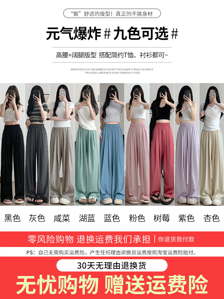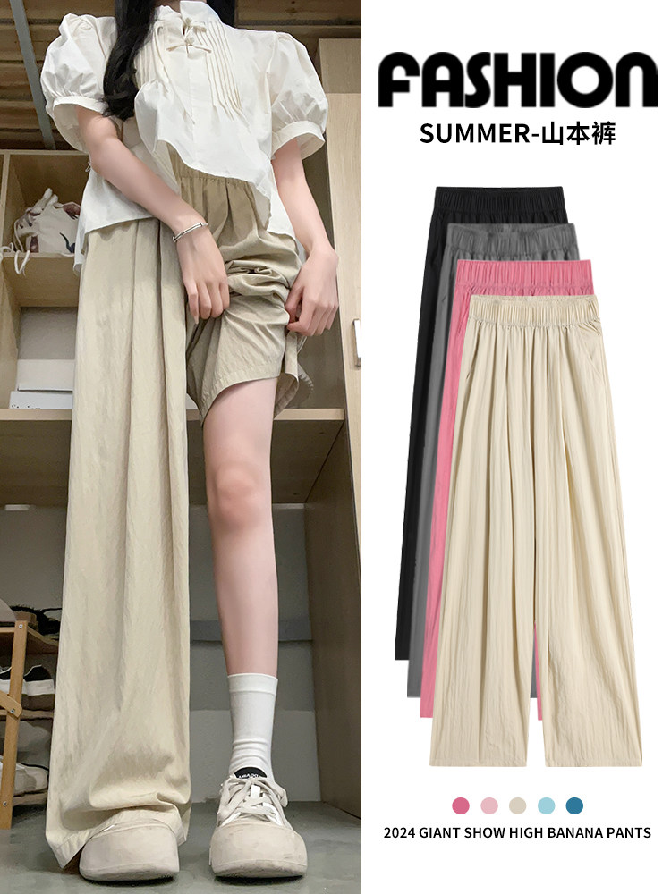 Абрикосовые летние тонкие шелковые штаны для отдыха, высокая талия, свободный прямой крой