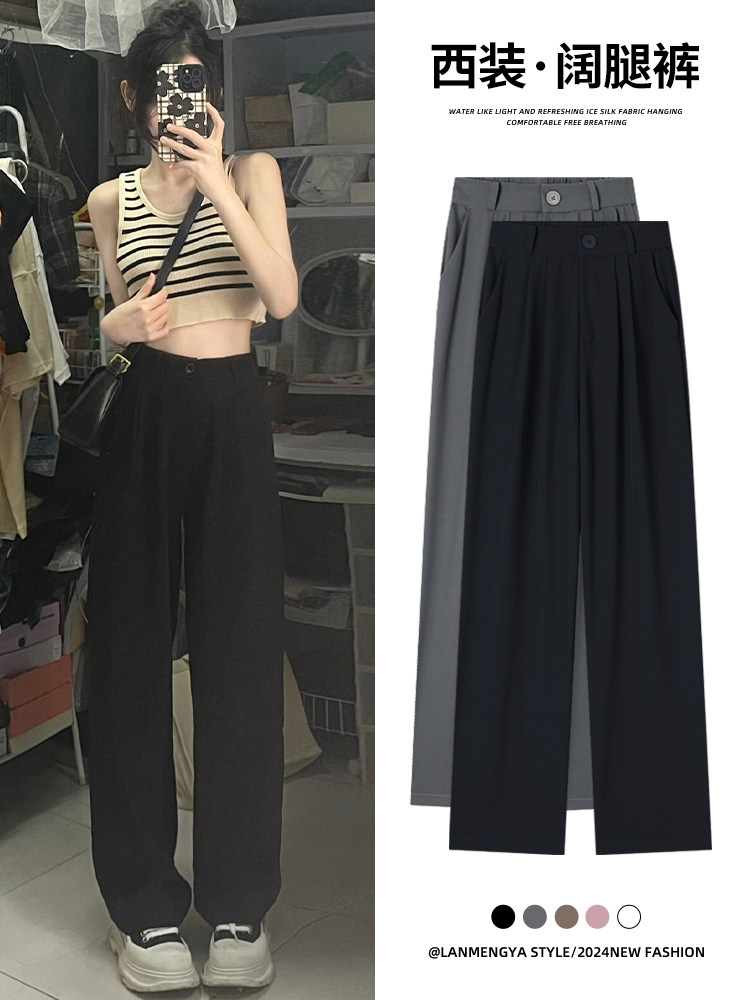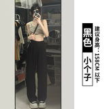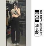Черные тонкие штаны, костюм для отдыха, свободный прямой крой, высокая талия, подходит для подростков