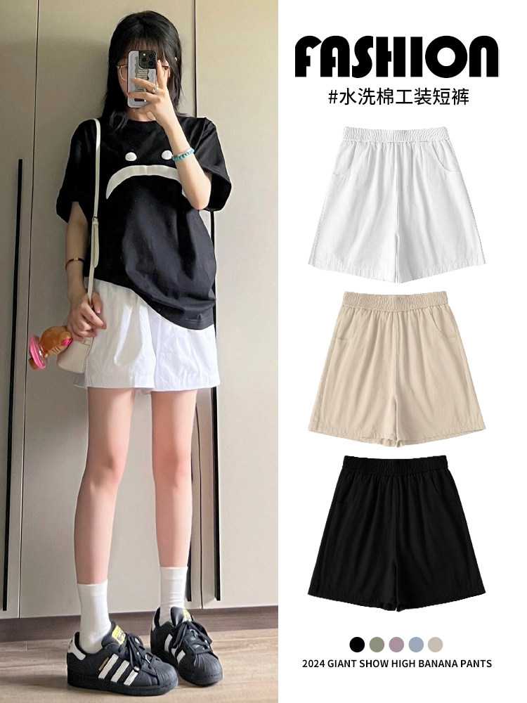 Белые шорты, штаны для отдыха, из хлопка и льна, 2024 года, оверсайз, свободный крой, подходит для подростков