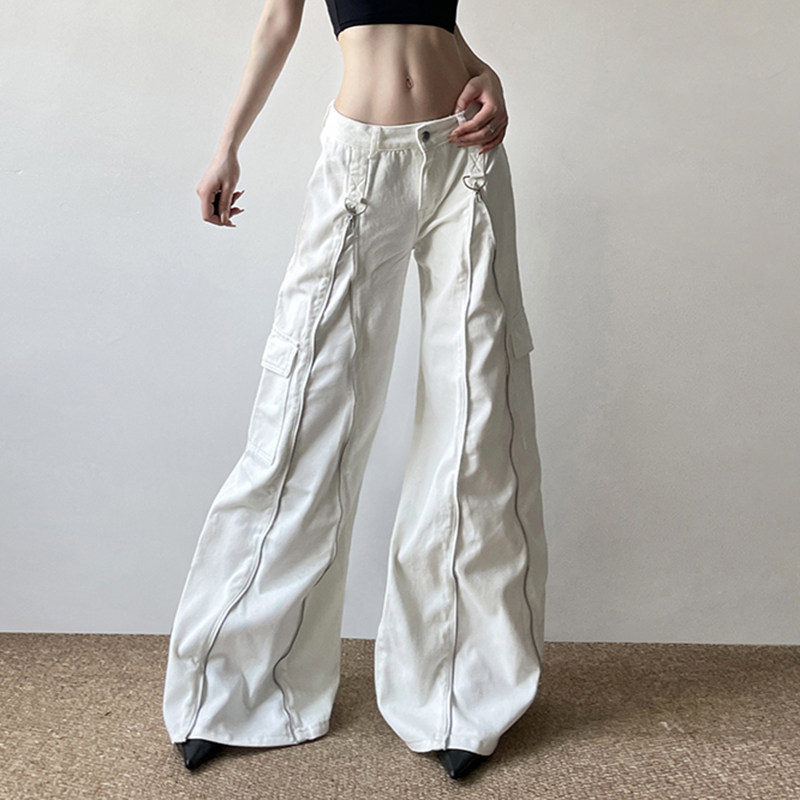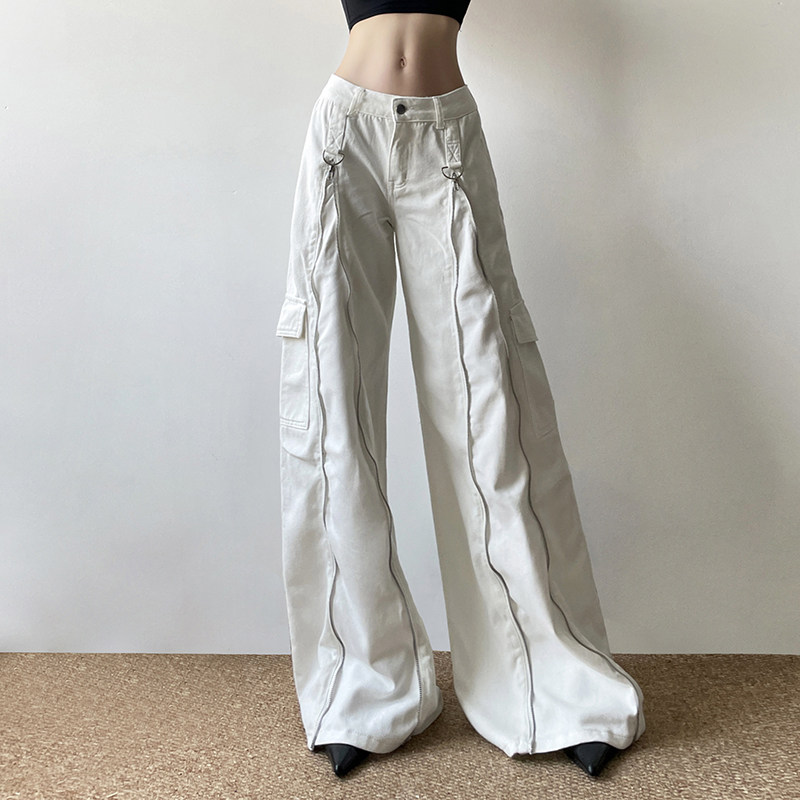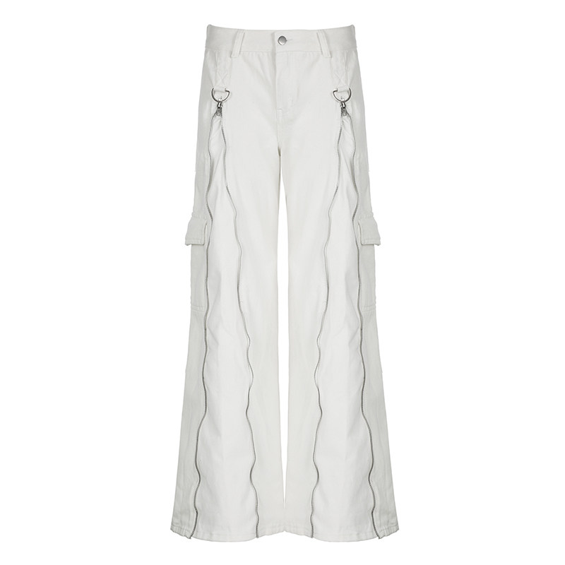 Ретро сексуальные металлические прямые свободные джинсы с молнией, штаны, в американском стиле
