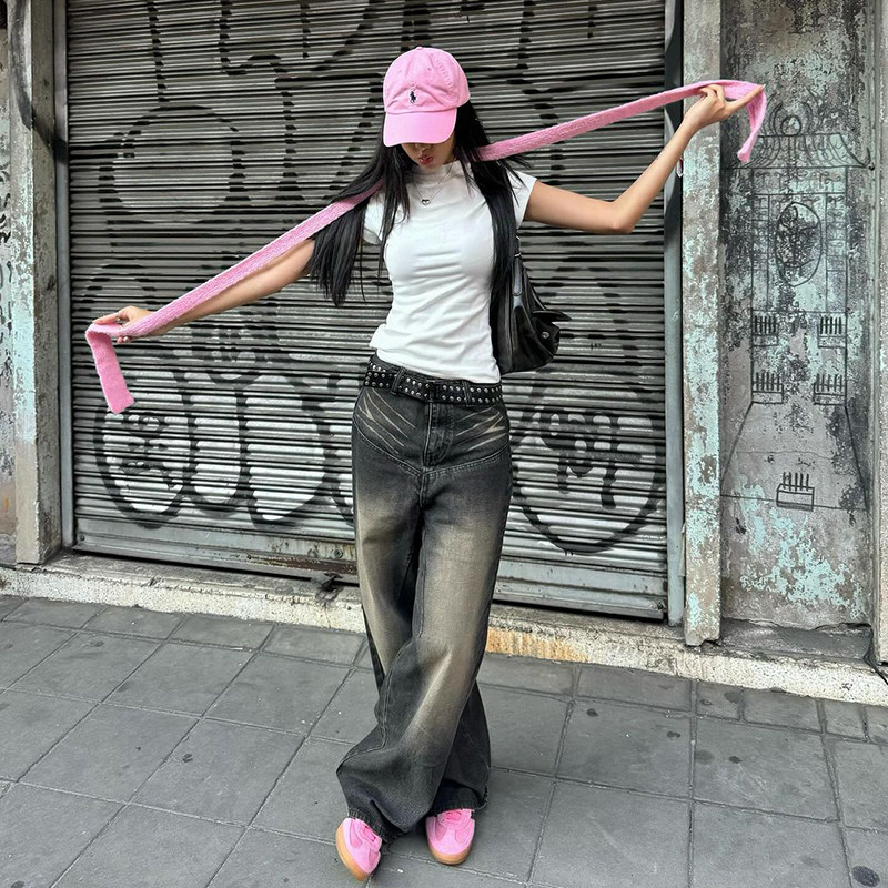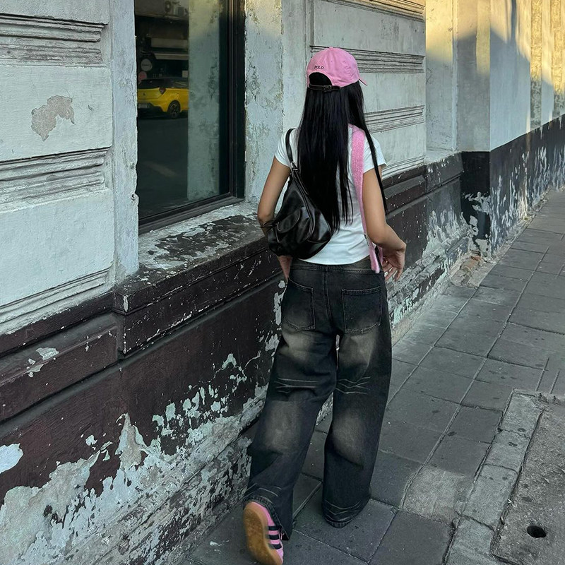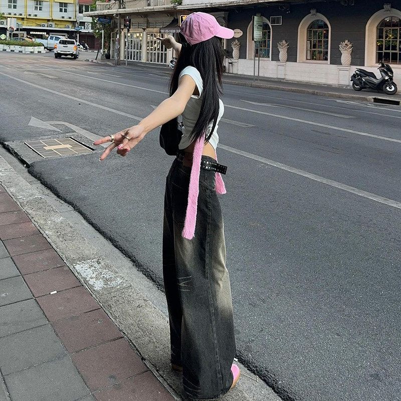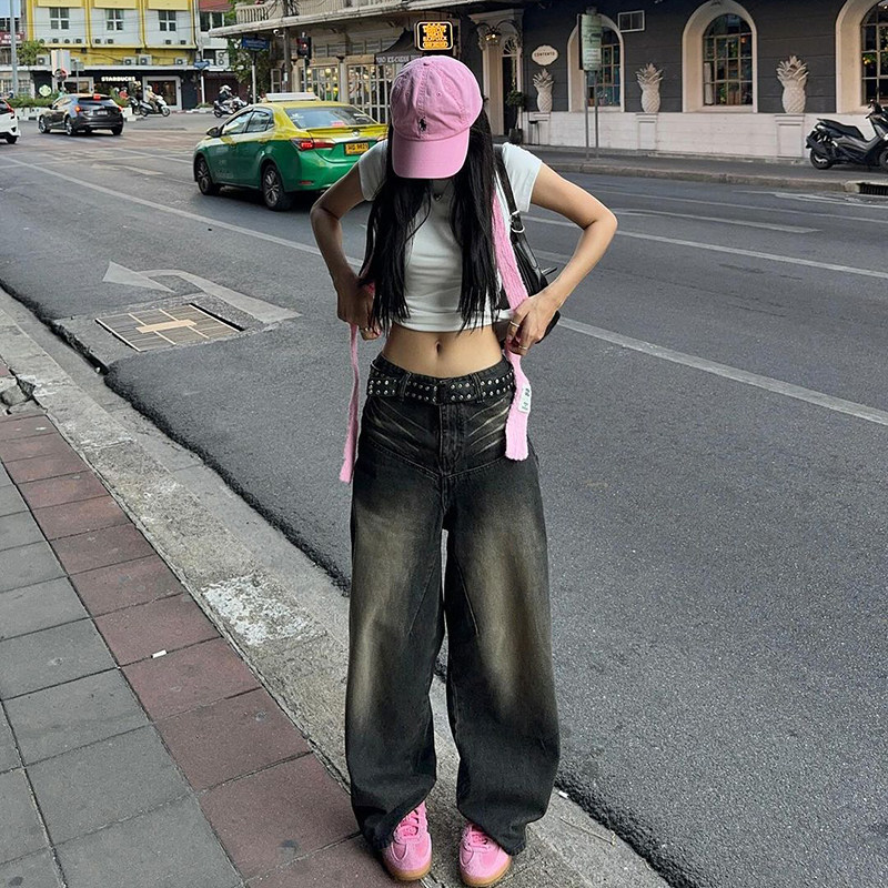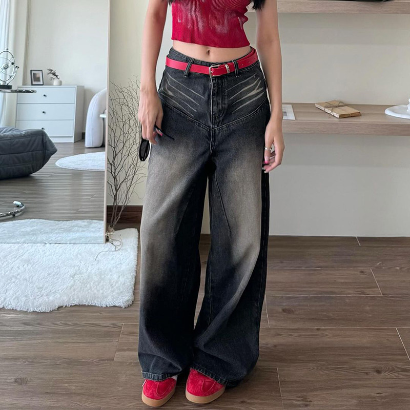 Ретро сексуальные базовые прямые свободные джинсы, повседневные брюки, штаны, в американском стиле, свободный прямой крой