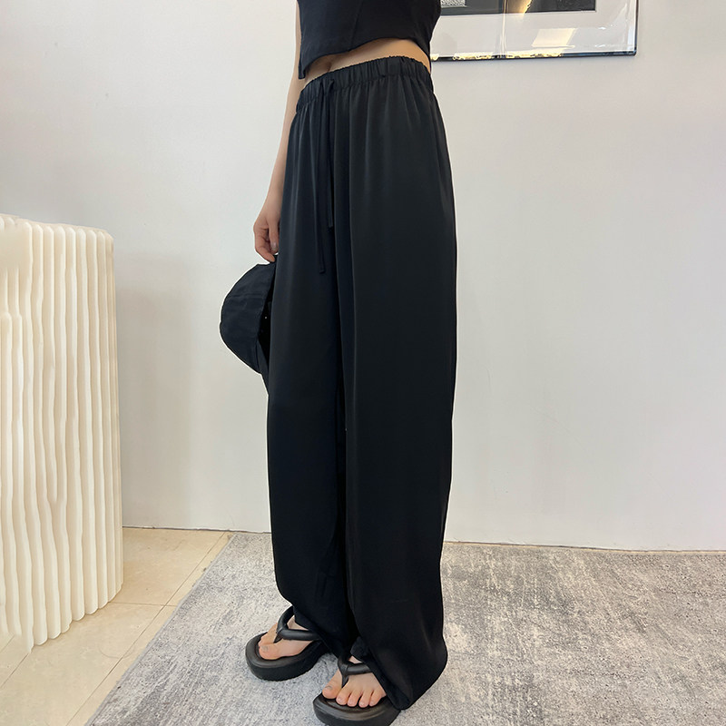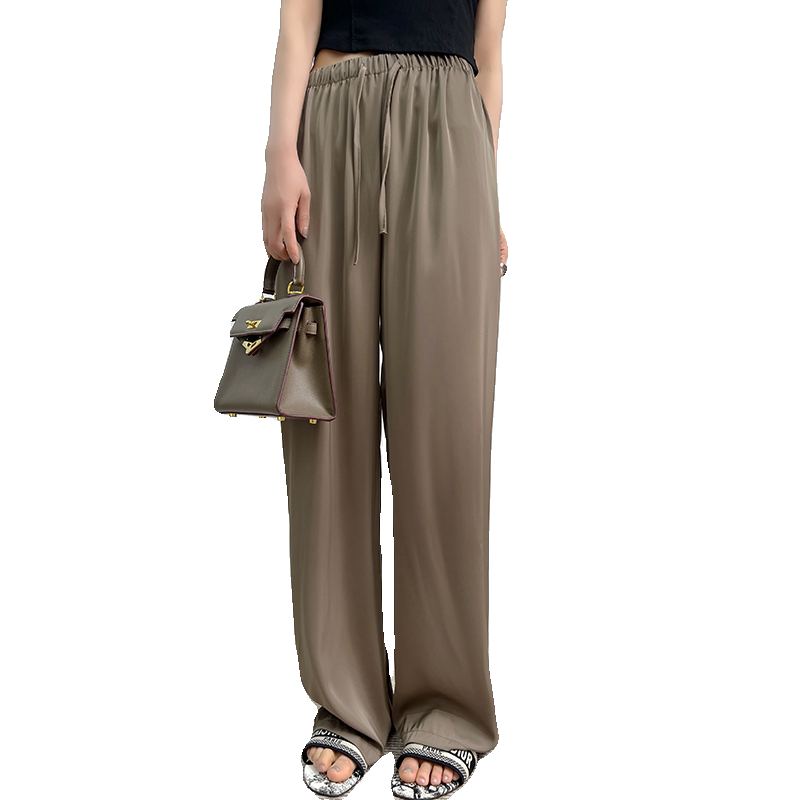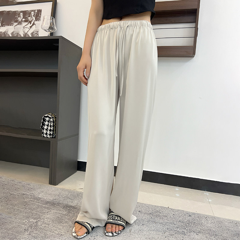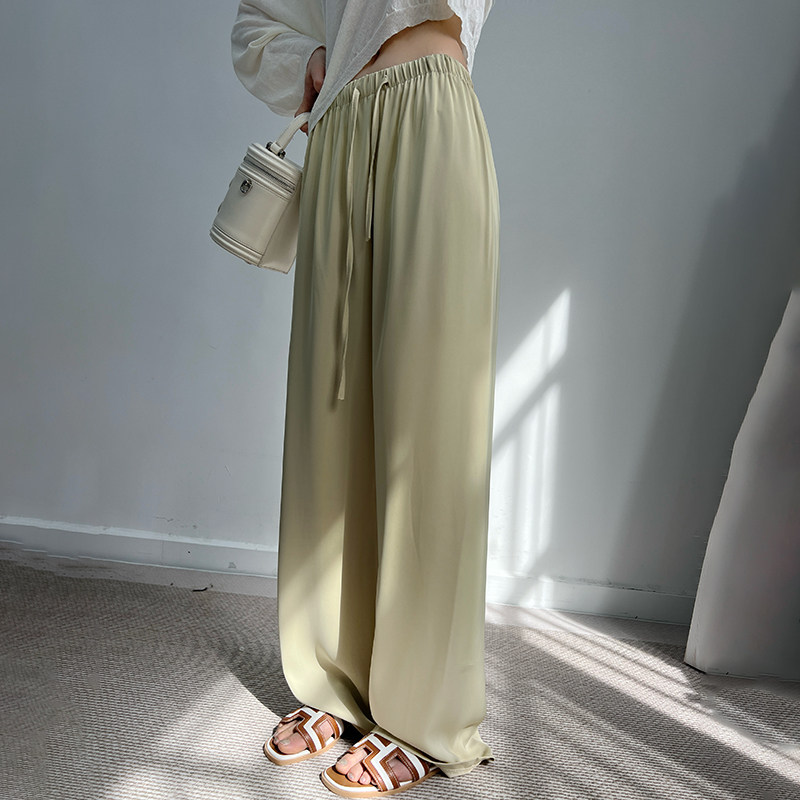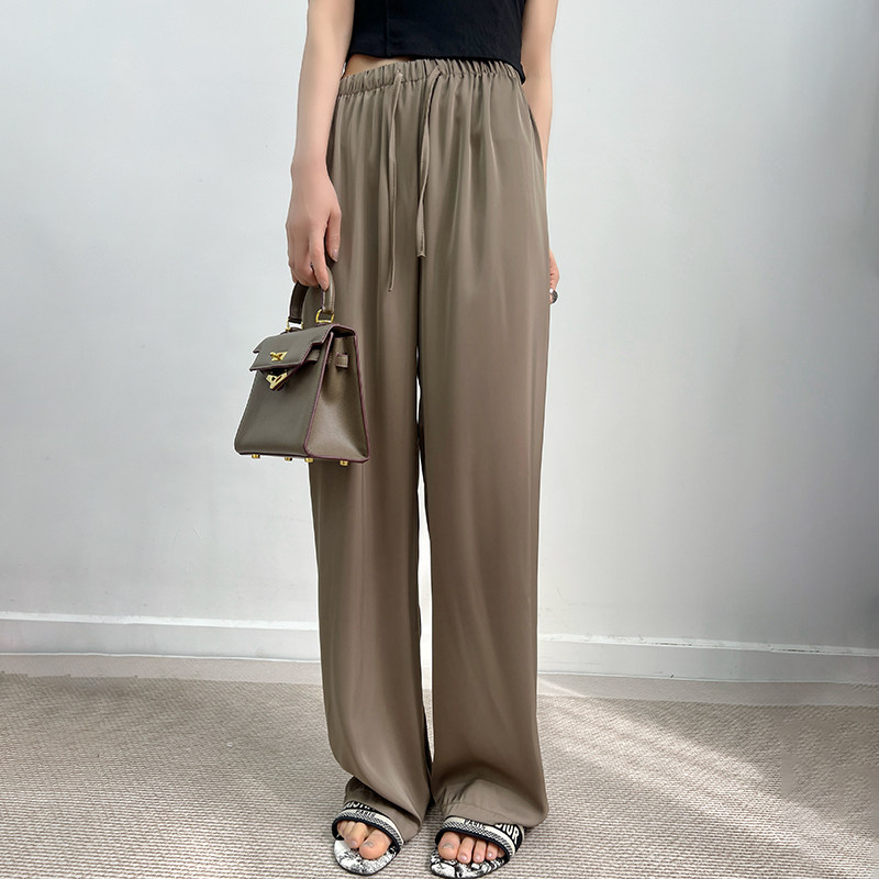 Шелковые тонкие штаны, высокая талия, свободный прямой крой