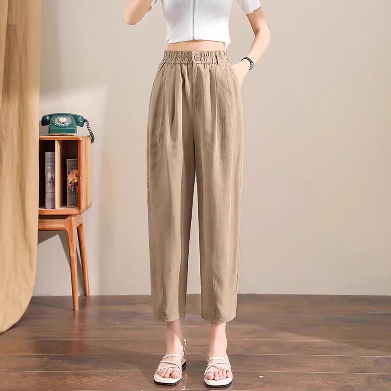 Бежевые летние тонкие штаны, подходят для подростков, из хлопка и льна