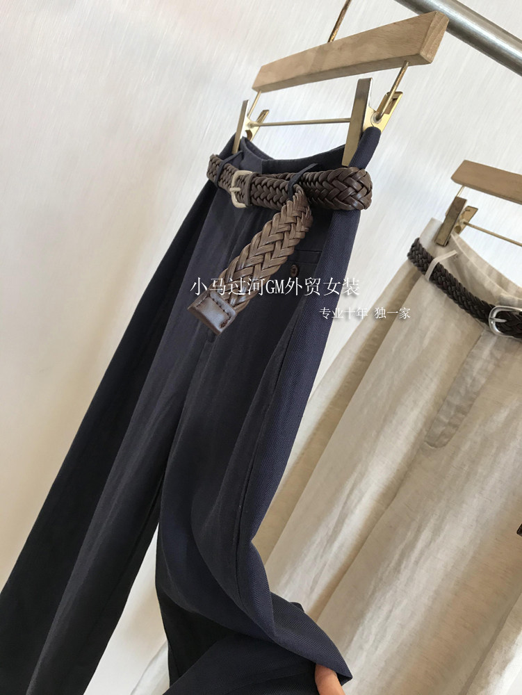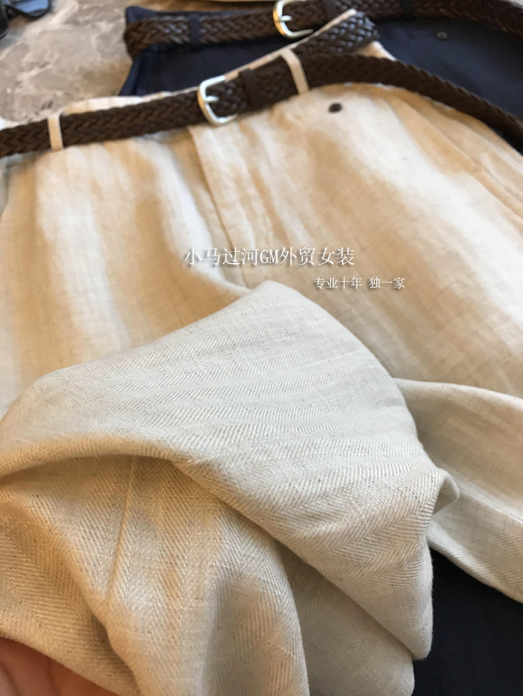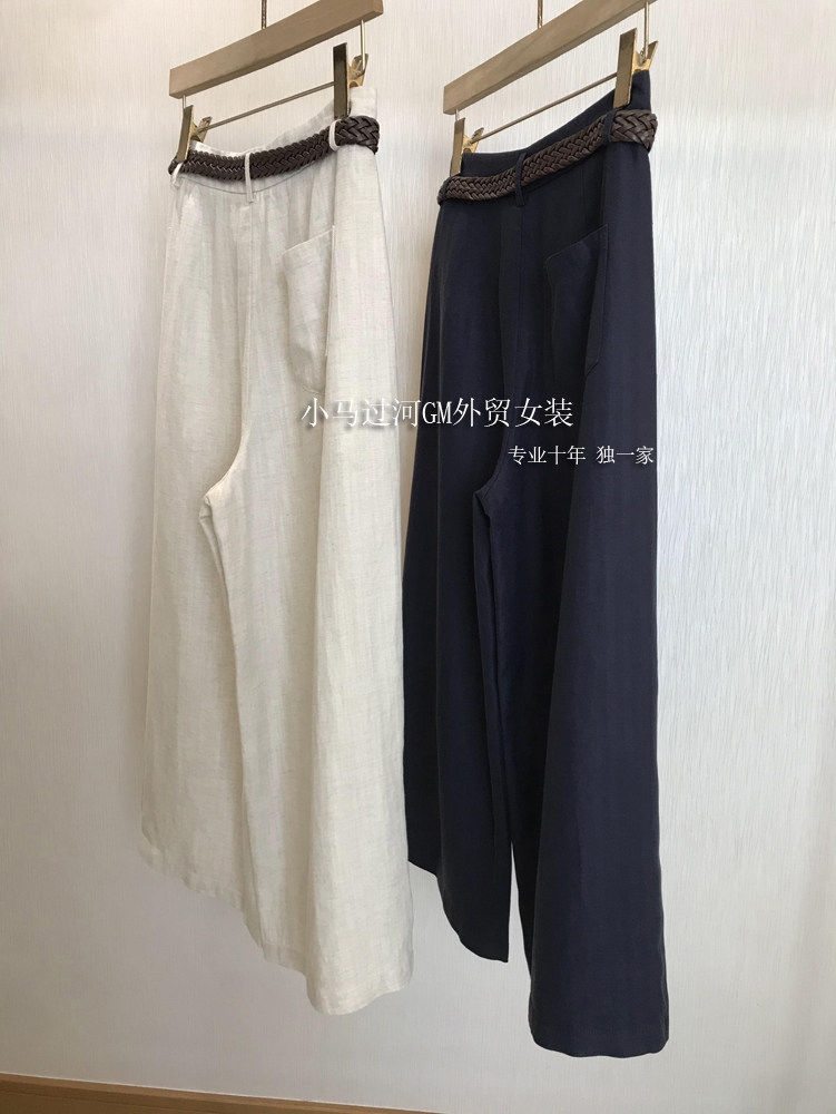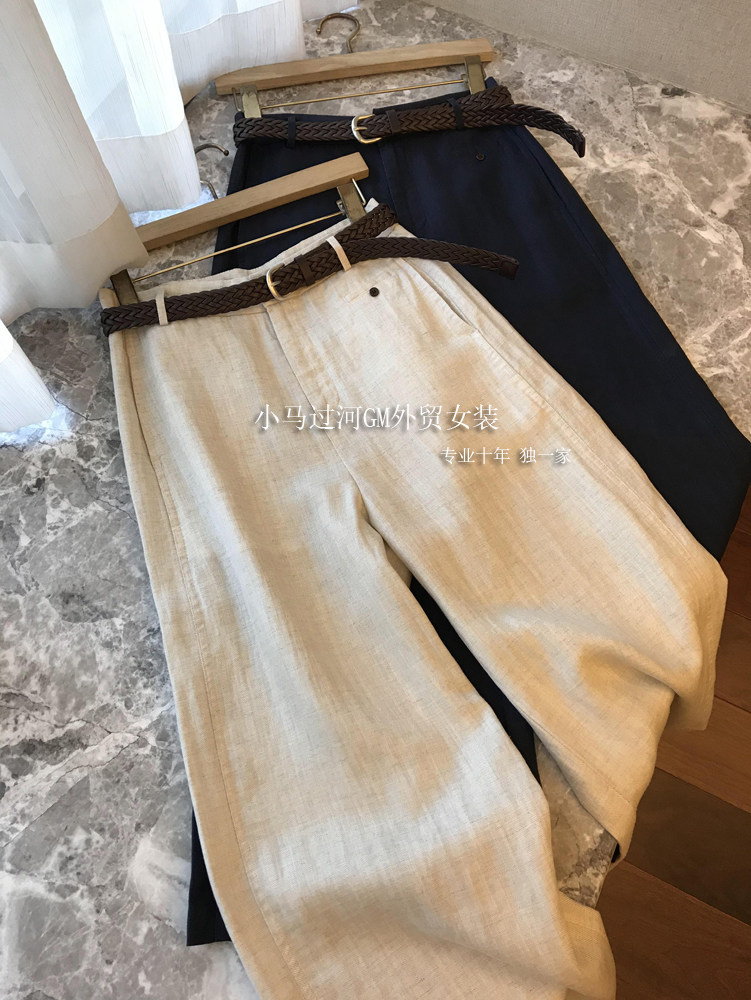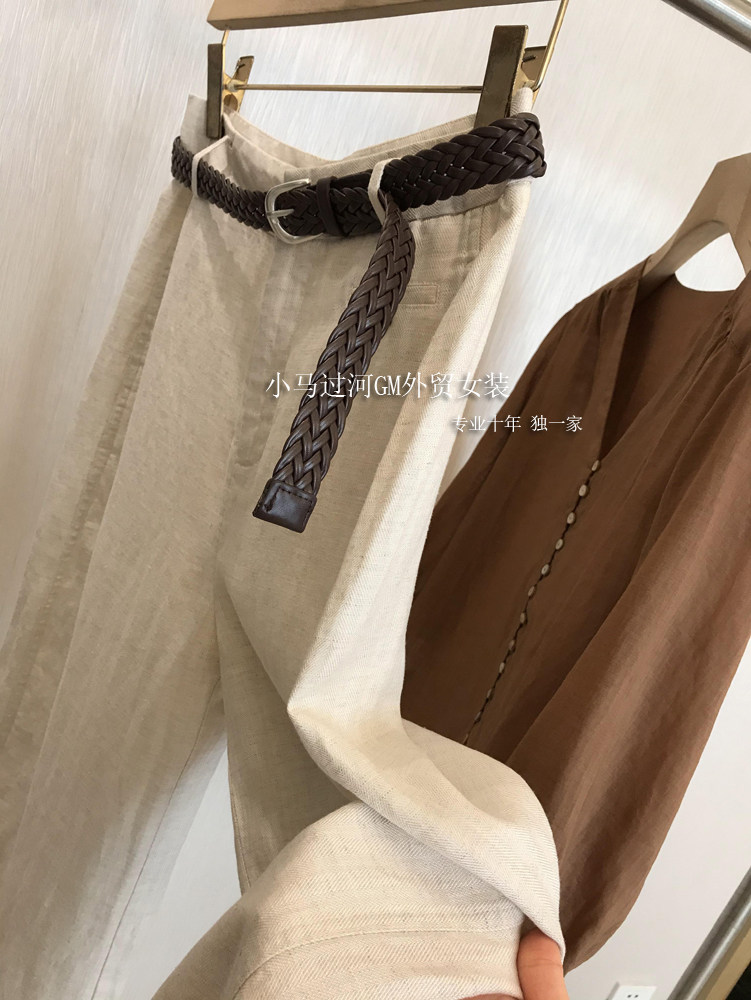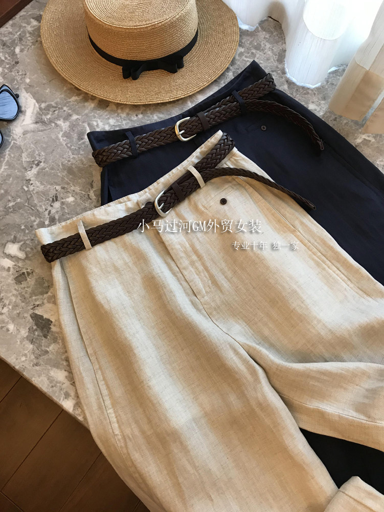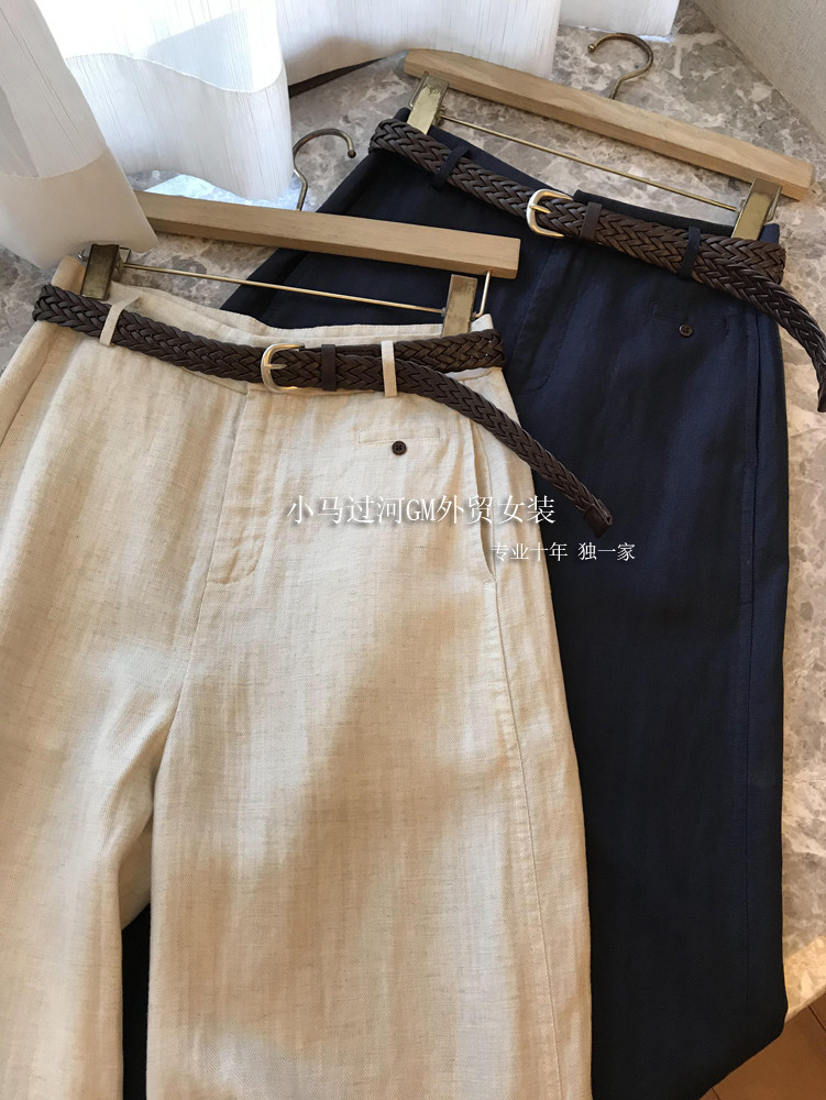 Владелец оставляет его себе, и его легко носить!!Летние свободные повседневные брюки из рами с прямой талией и поясом