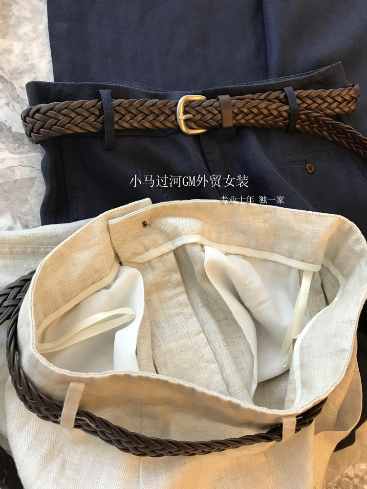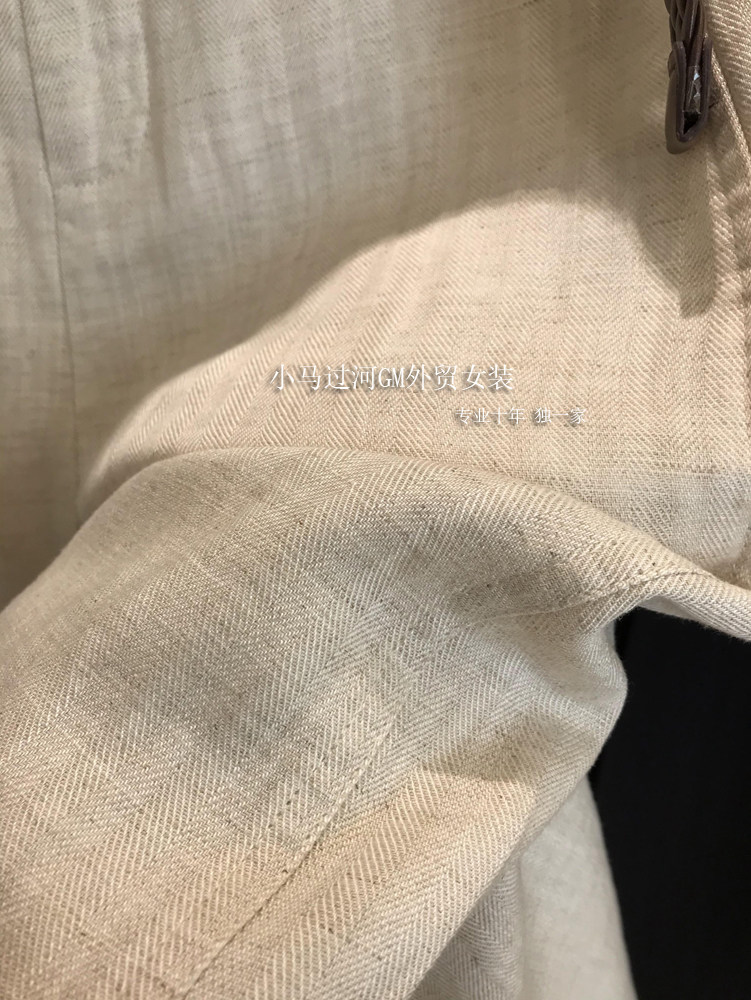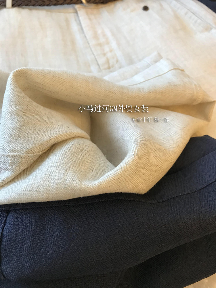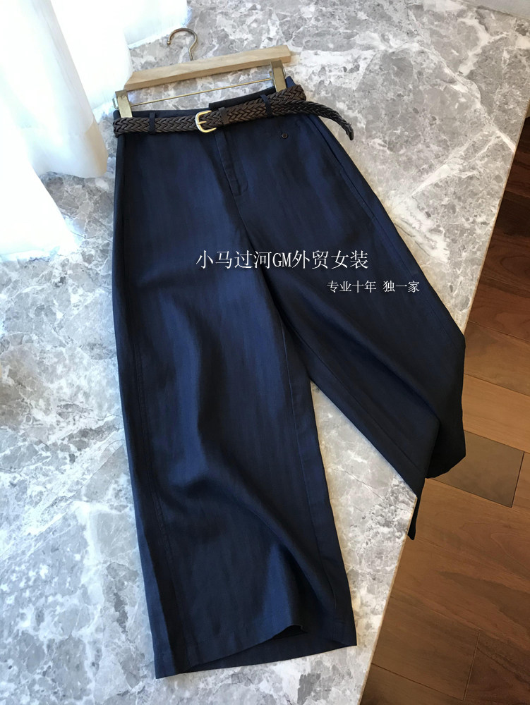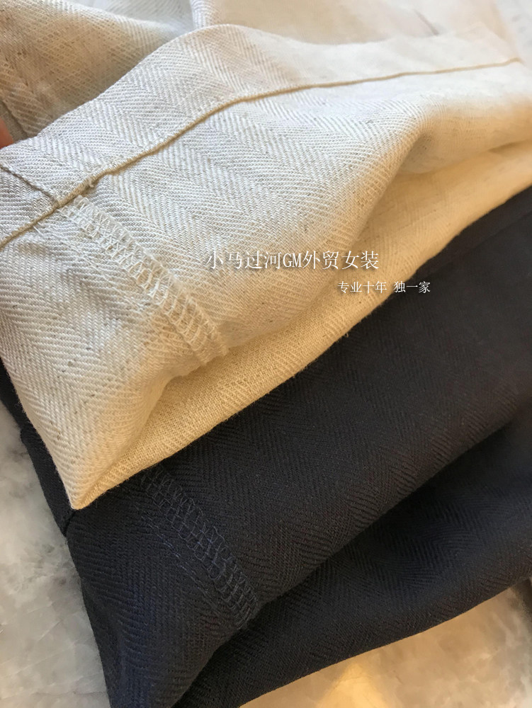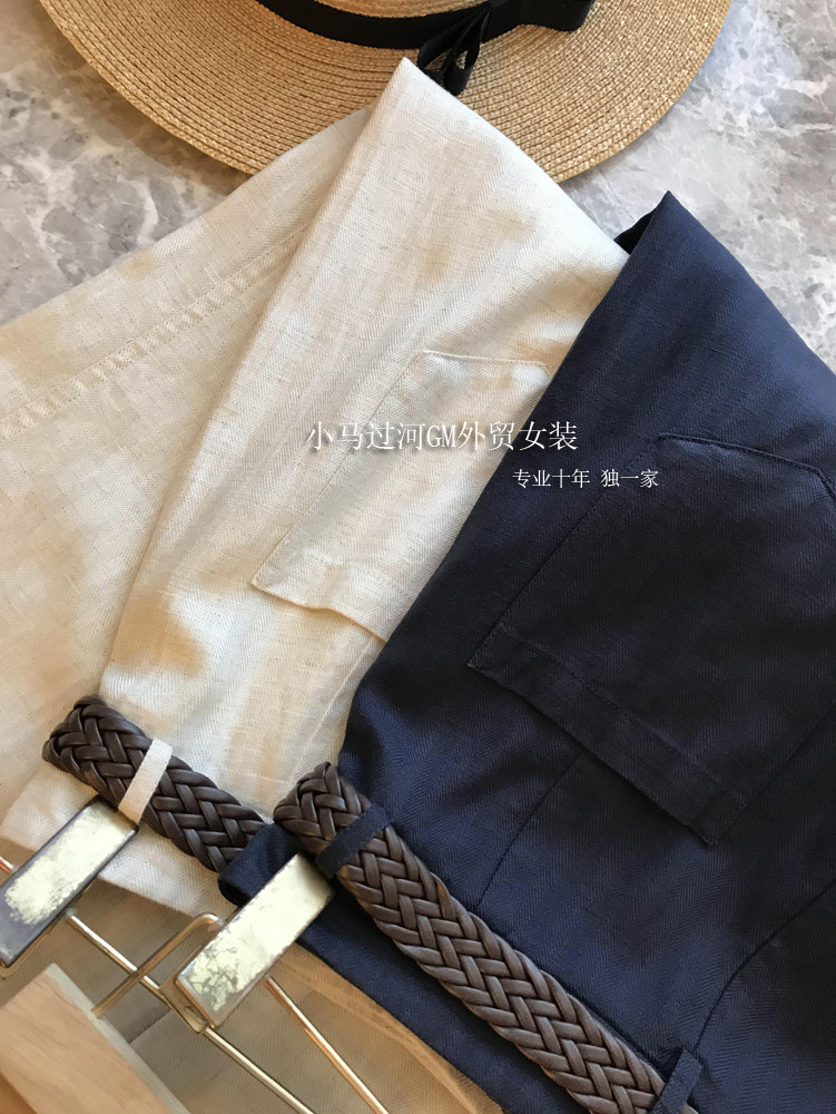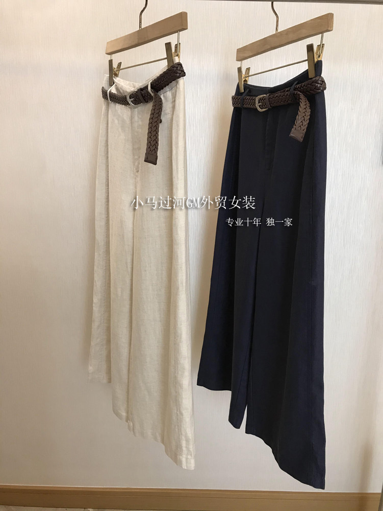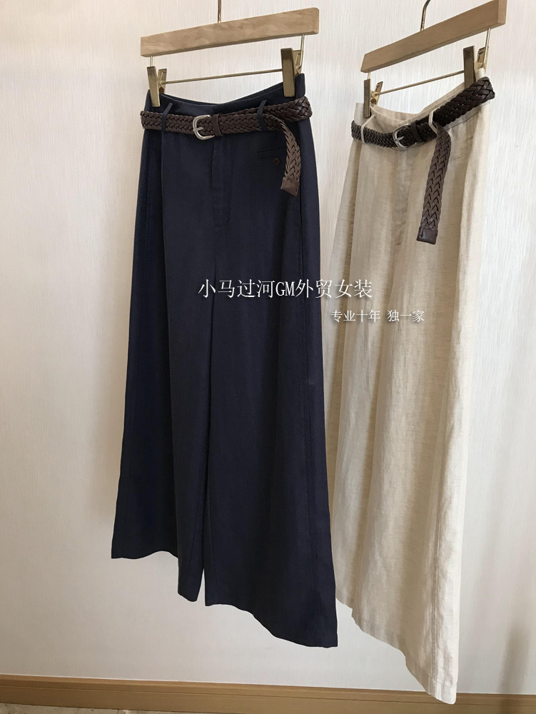 Владелец оставляет его себе, и его легко носить!!Летние свободные повседневные брюки из рами с прямой талией и поясом