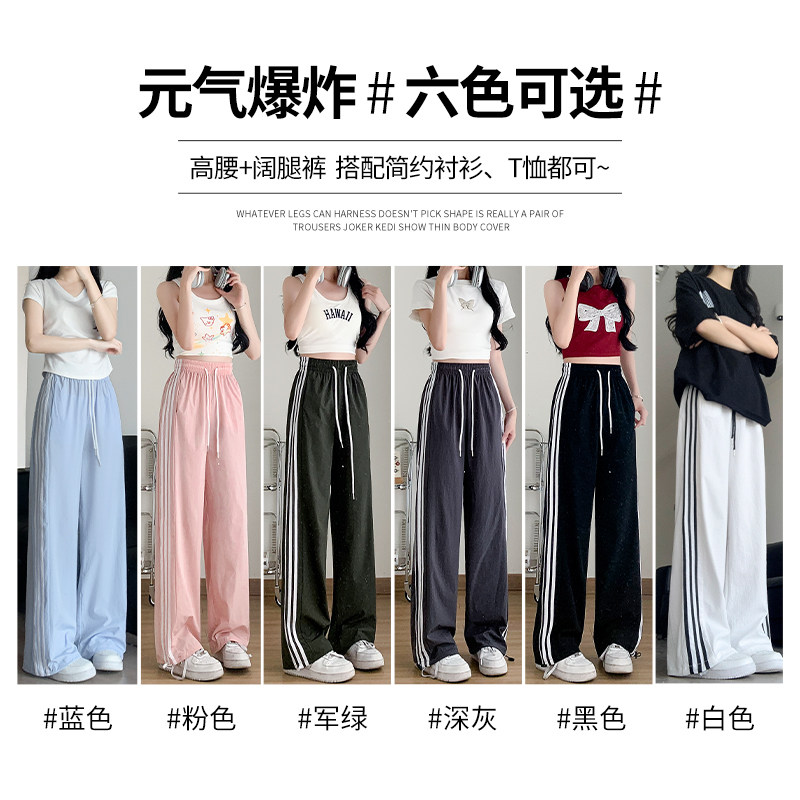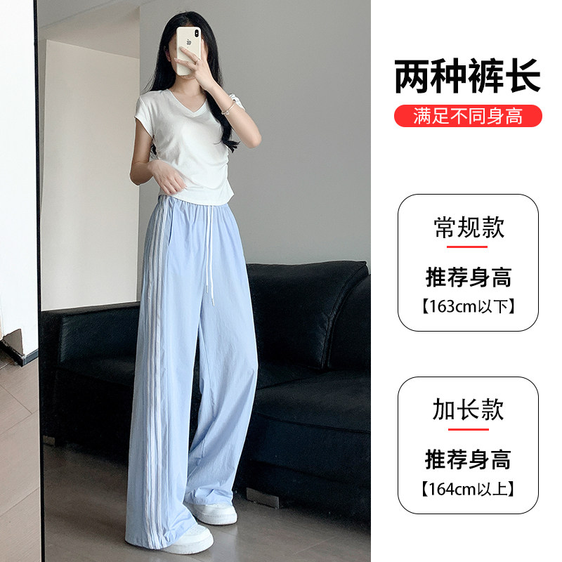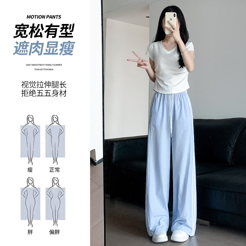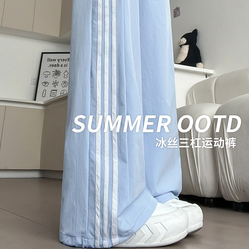 Шелковые синие тонкие штаны для отдыха, свободный прямой крой