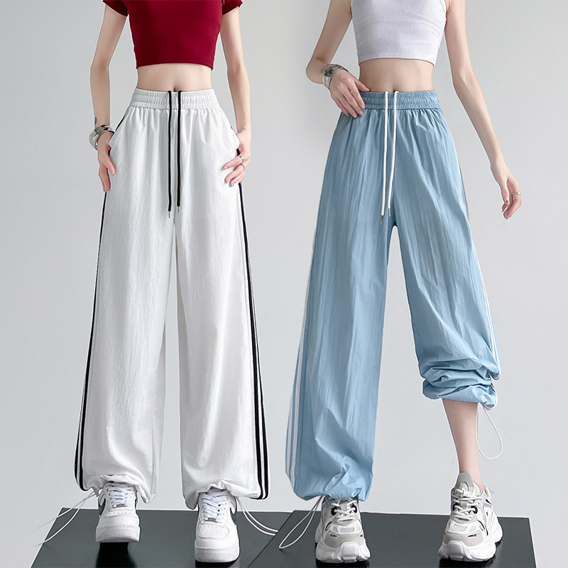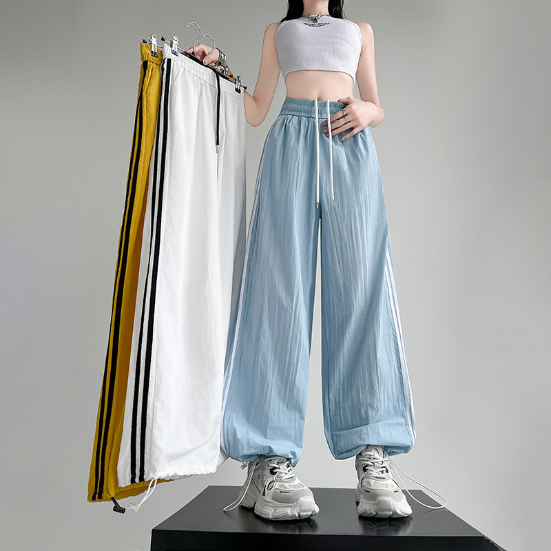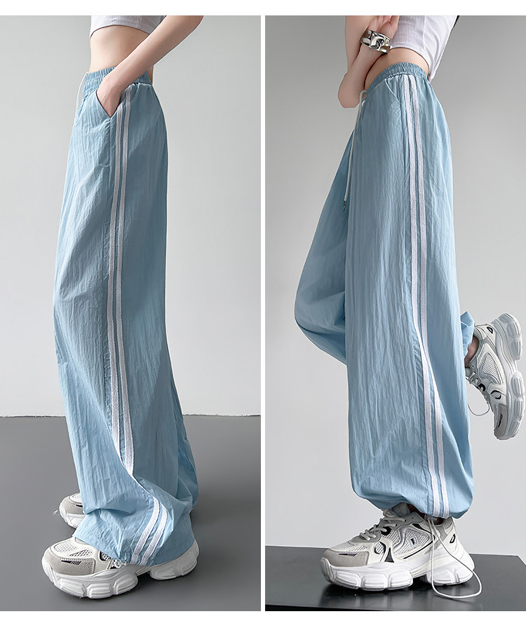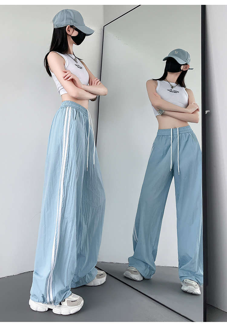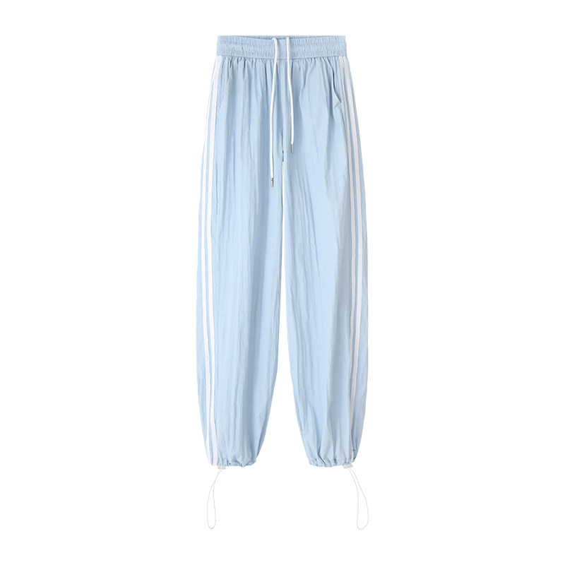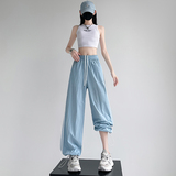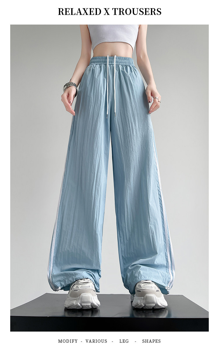 Синие быстросохнущие тонкие шелковые штаны, эластичная талия, свободный прямой крой