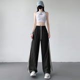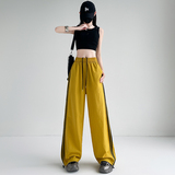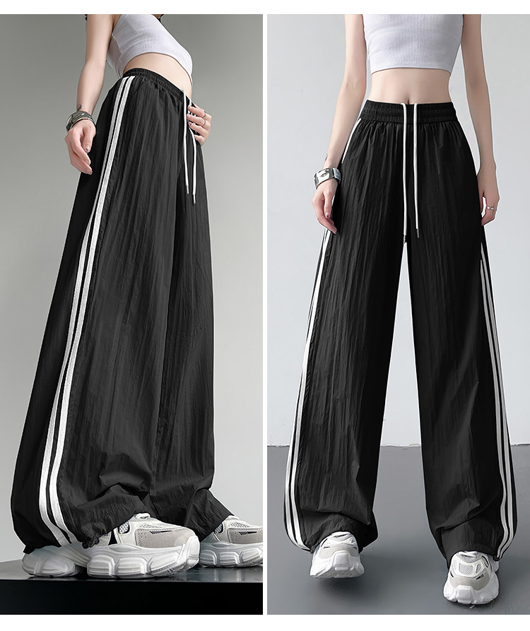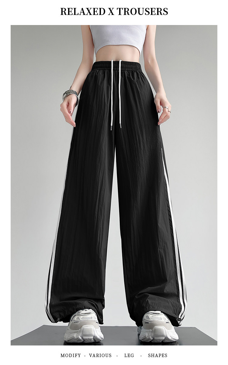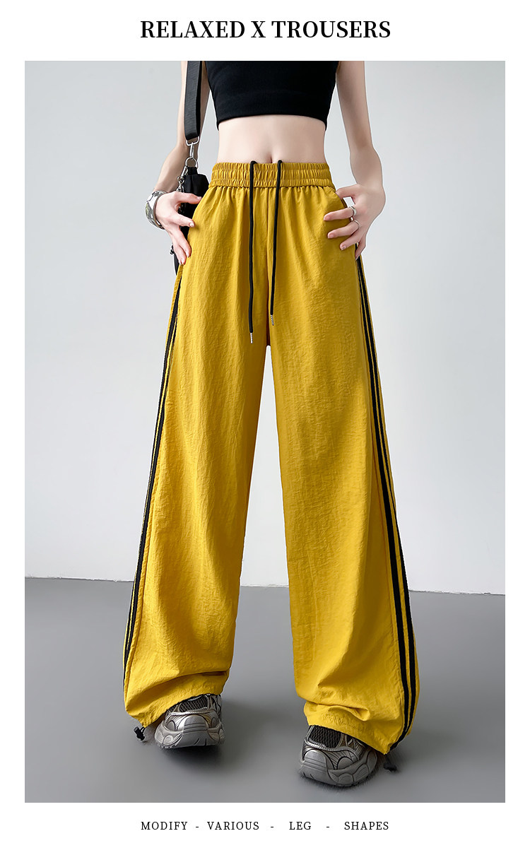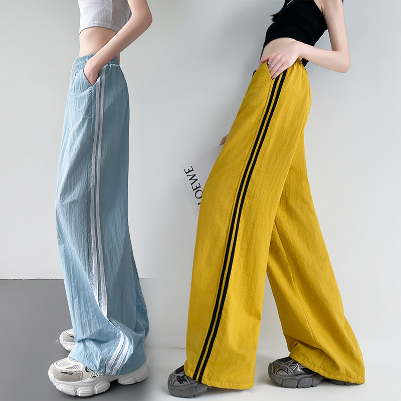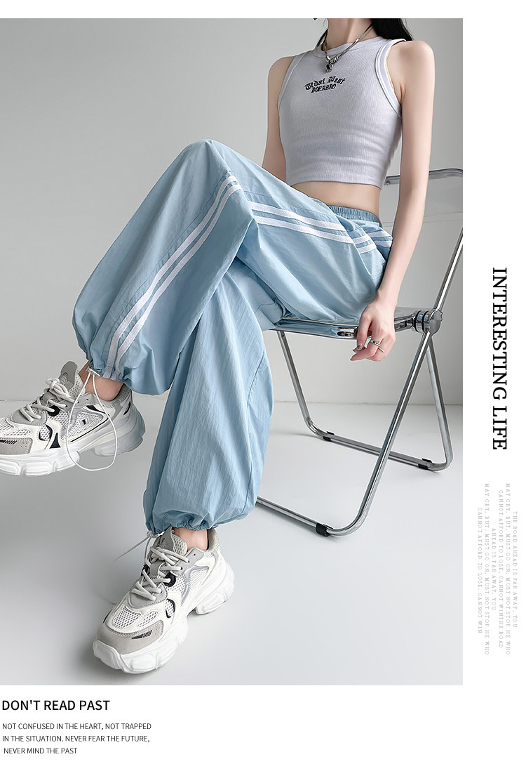 Синие быстросохнущие тонкие шелковые штаны, эластичная талия, свободный прямой крой