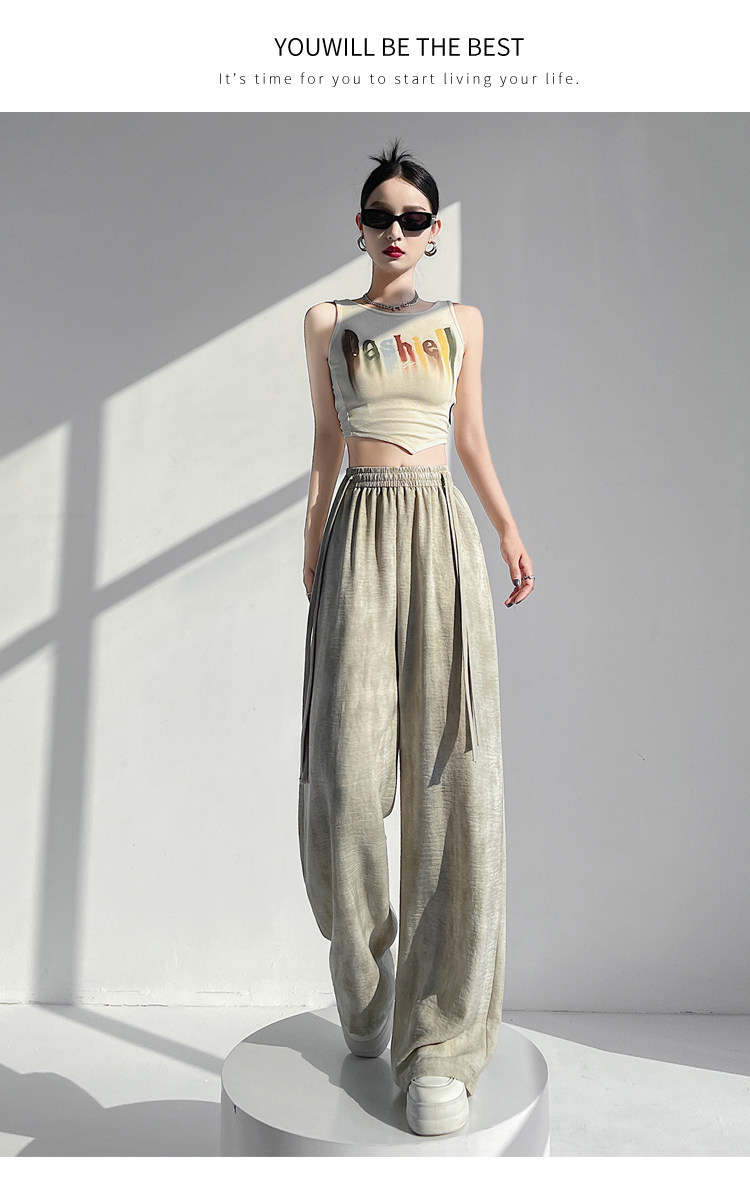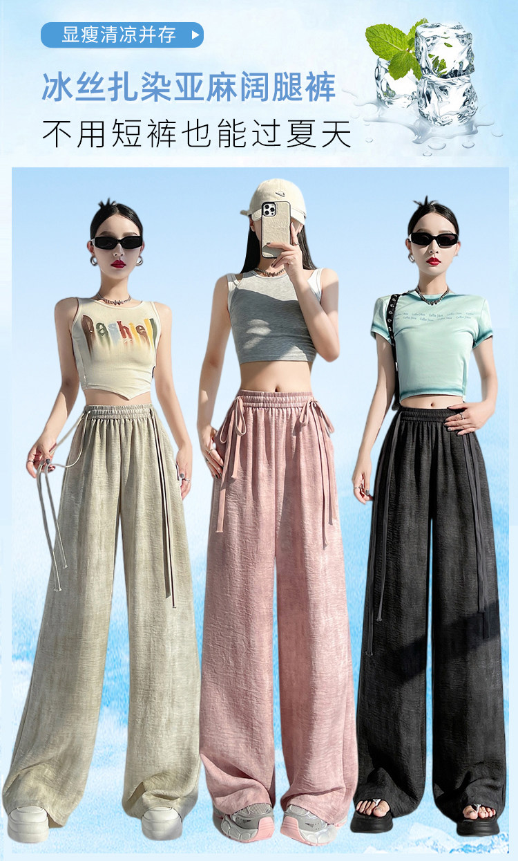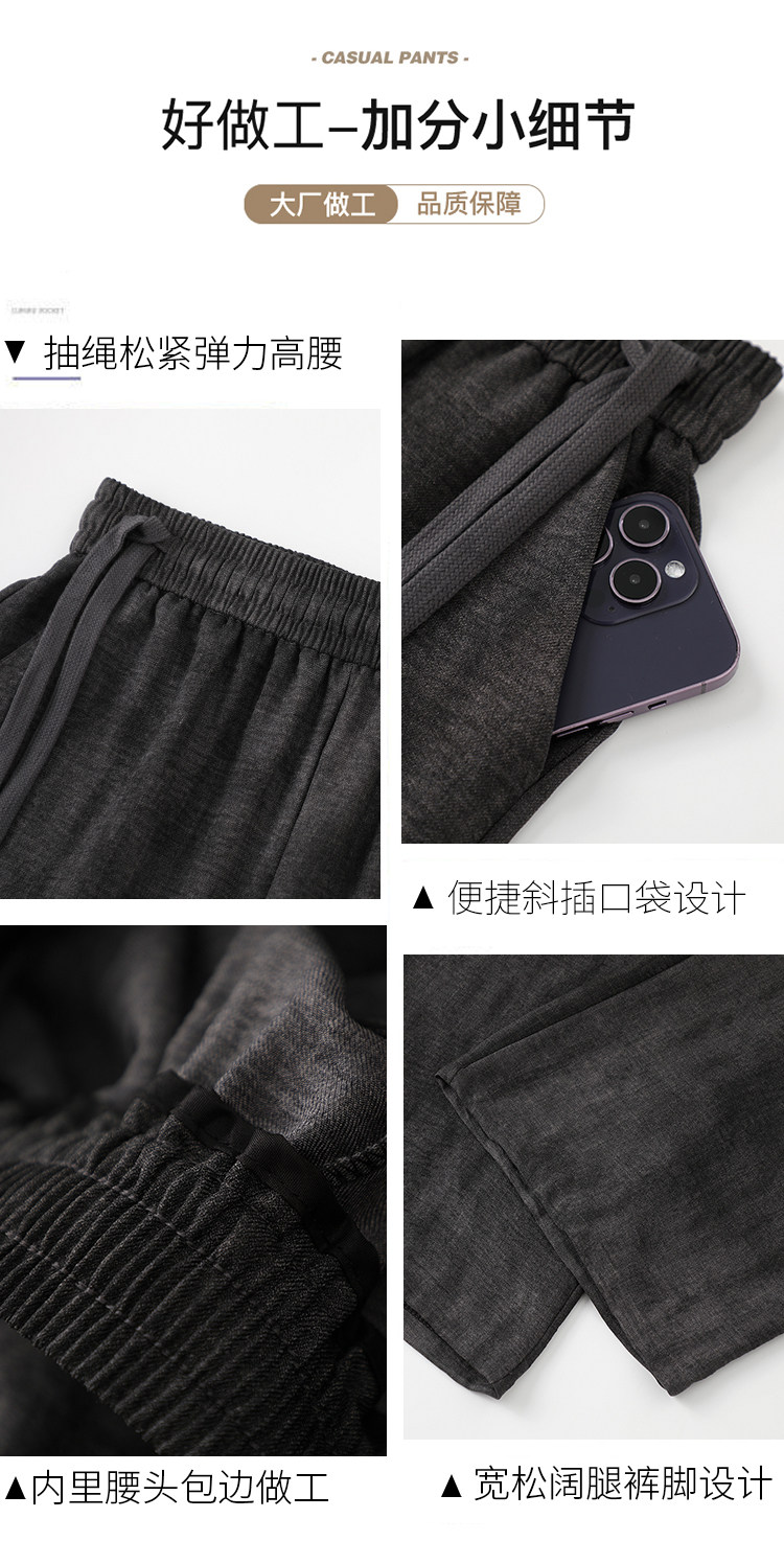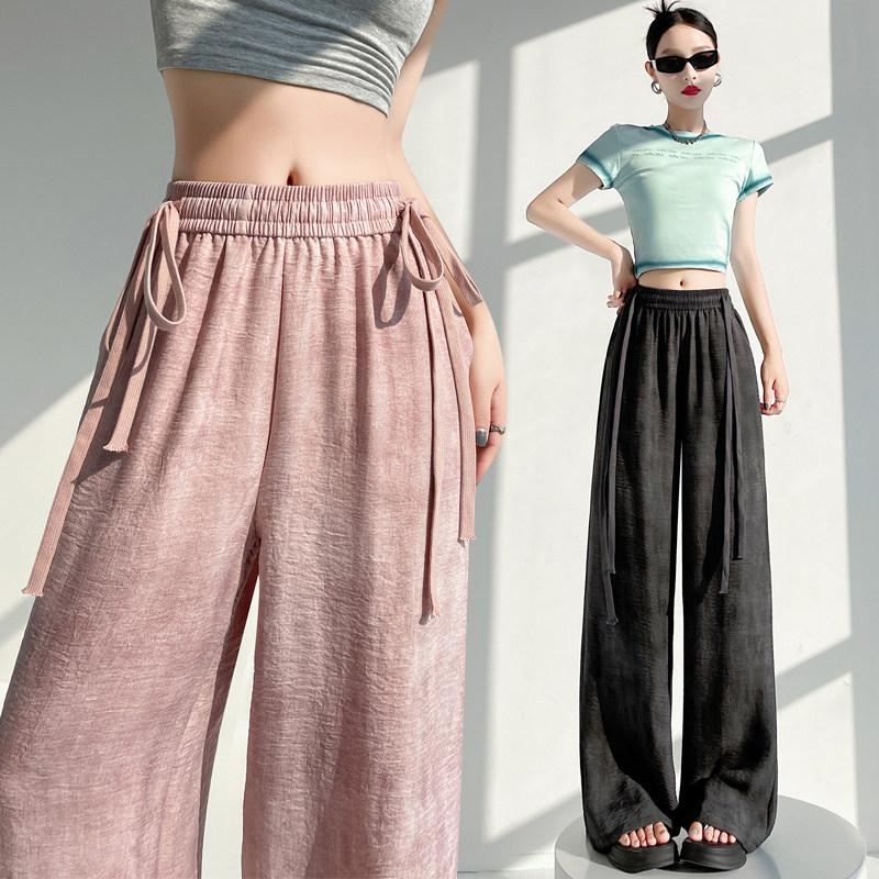 Летние тонкие шелковые штаны, из хлопка и льна, высокая талия