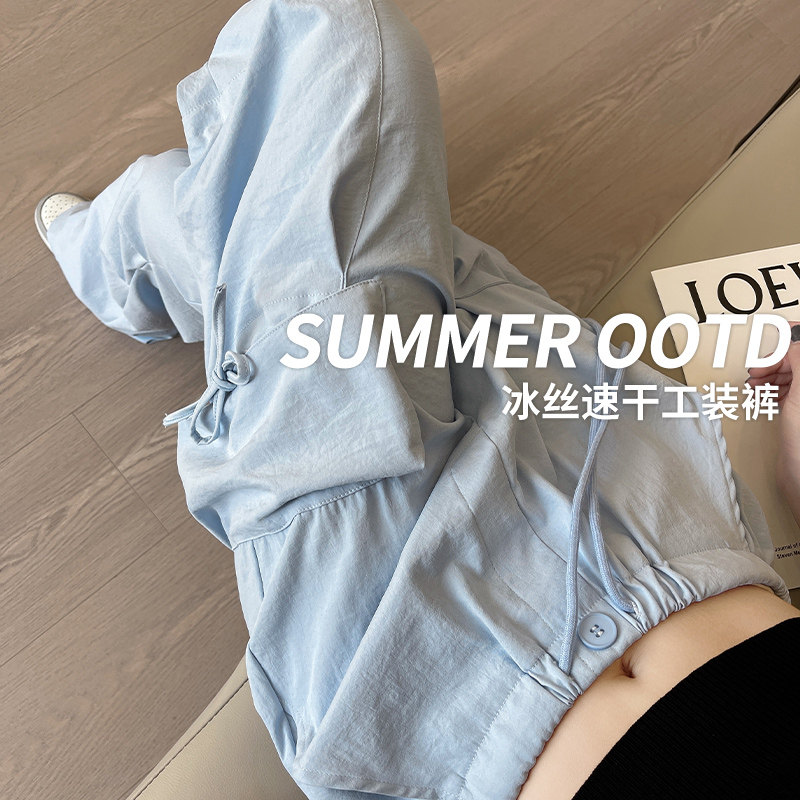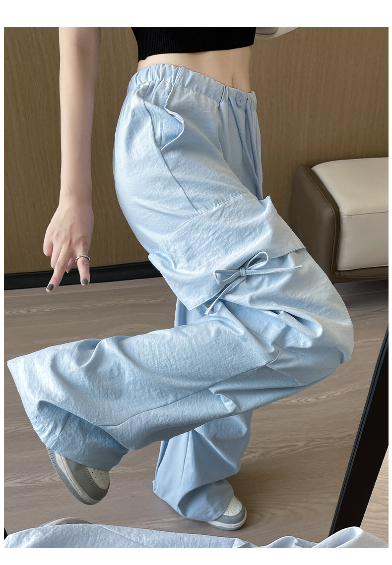 Синие штаны с бантиком, тонкий быстросохнущий парашютист для отдыха, новая коллекция