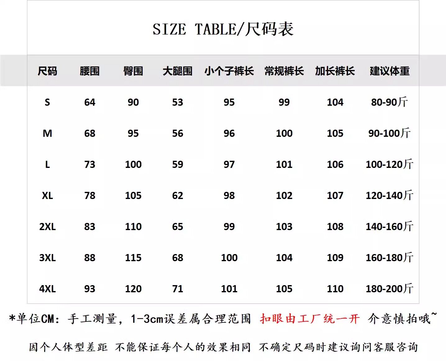 | Размер: | S код [предложение 80-95 Catties], M код [рекомендуется 95-105 Catties], Большой размер L [105–120 фунтов], Большой размер XL [120–140 фунтов], Большой размер 2XL [140–160 фунтов], Большой размер 3XL [160–180 фунтов], Большой размер 4XL [180–200 фунтов] |