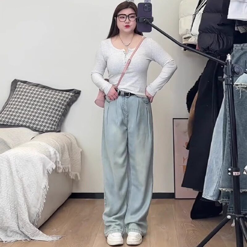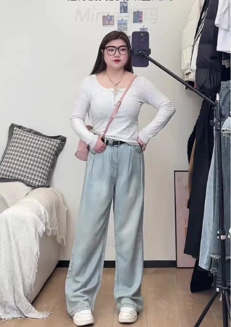 Светлые джинсы, шелковые штаны, для формы тела «груша», размер, свободный крой