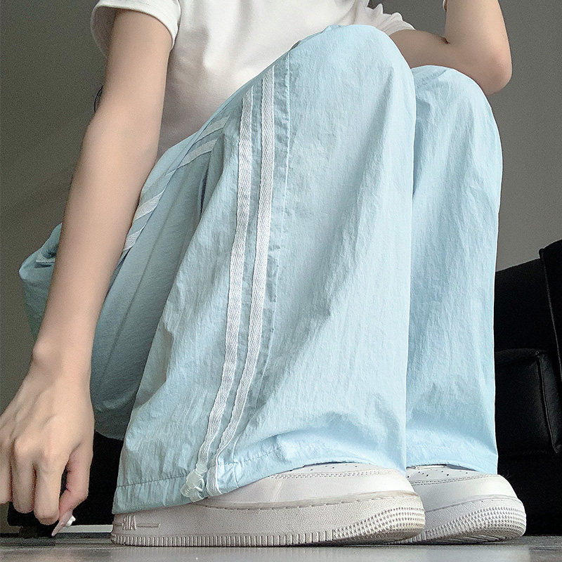 Синие быстросохнущие осенние штаны, тонкие леггинсы для отдыха, оверсайз, свободный прямой крой