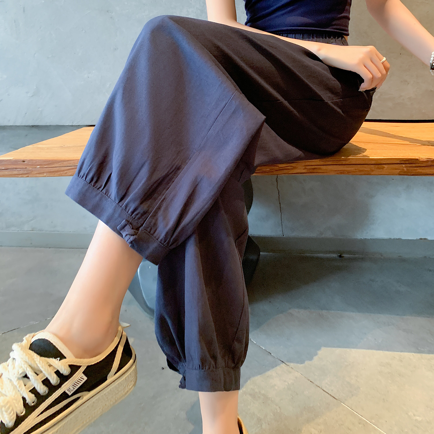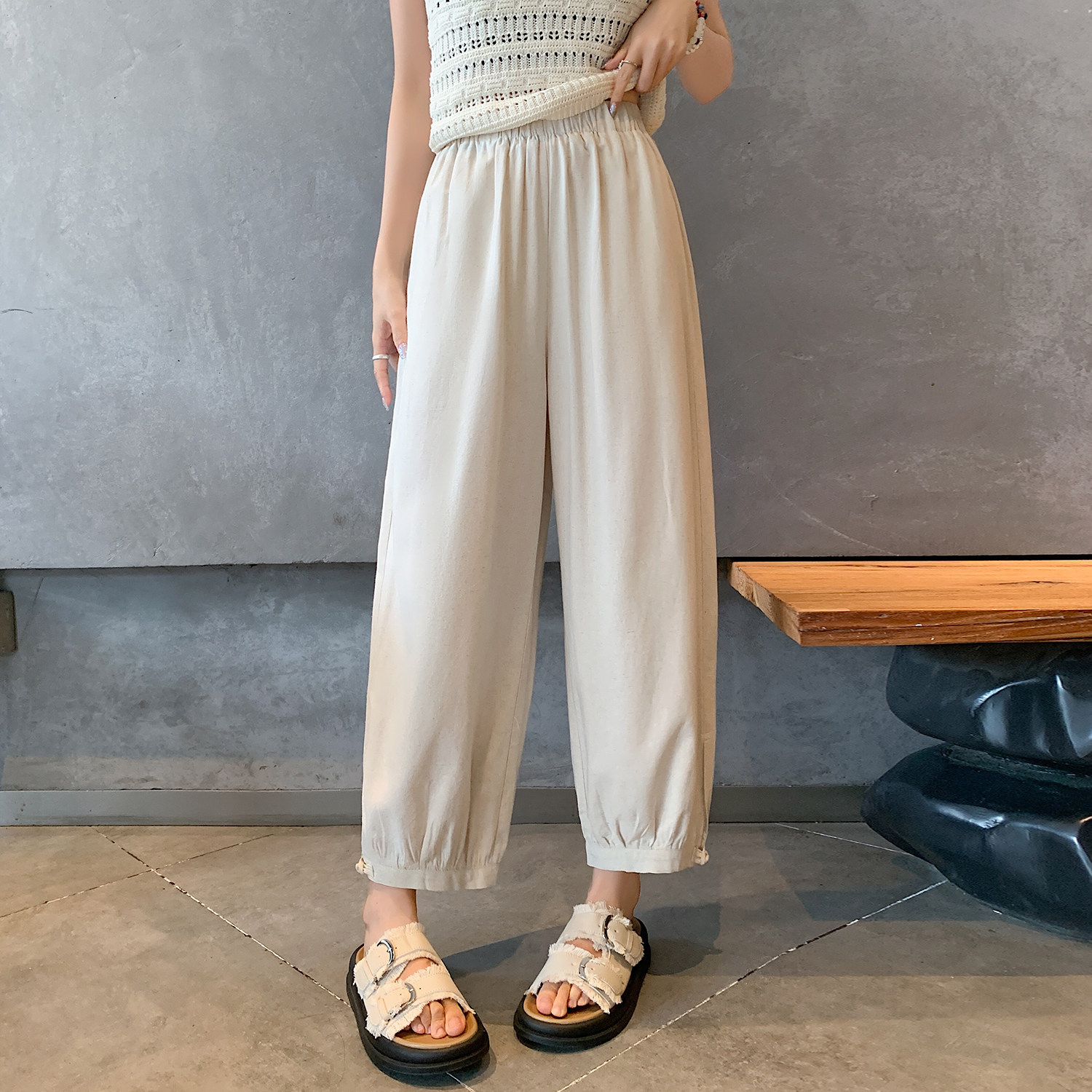 Шелковые быстросохнущие летние тонкие приталенные штаны для отдыха, из хлопка и льна, высокая талия, подходят для подростков