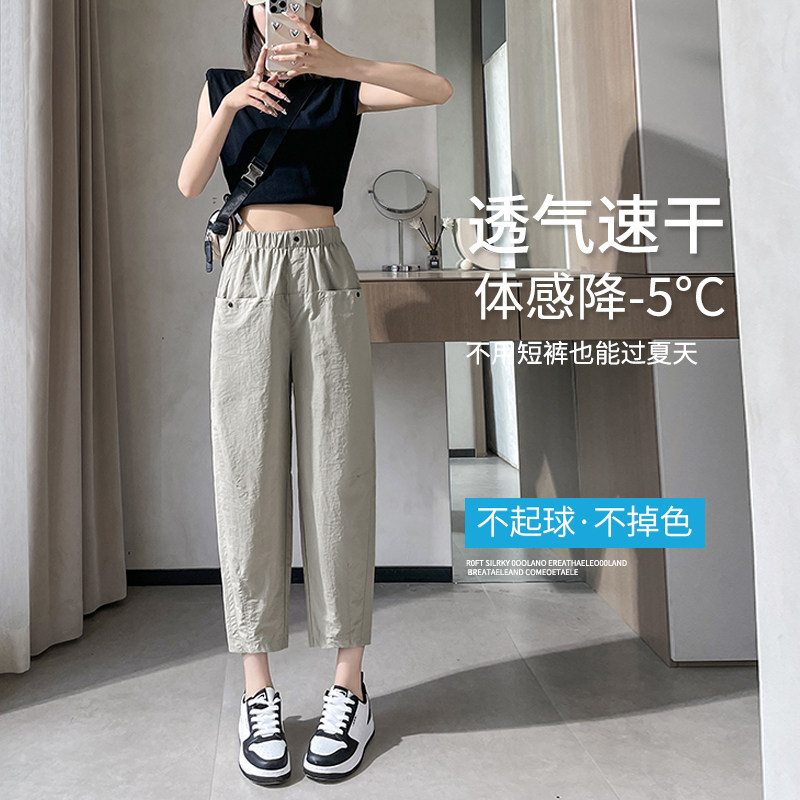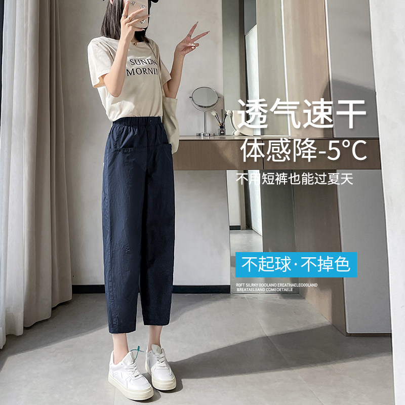 Синие быстросохнущие тонкие легкие шелковые штаны