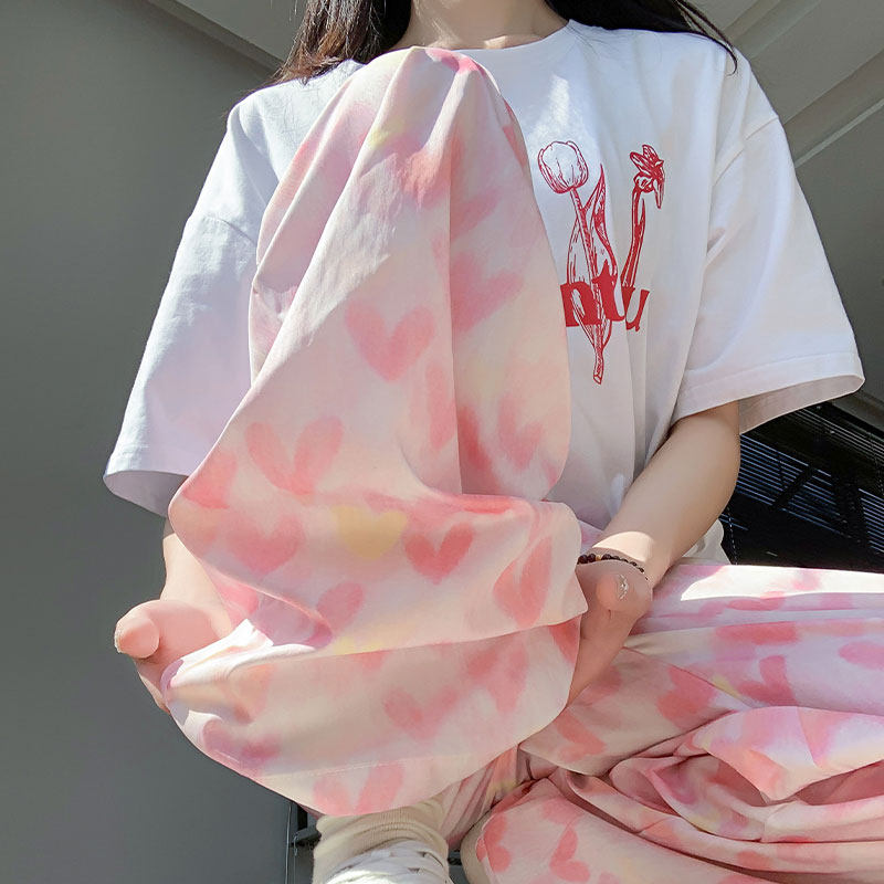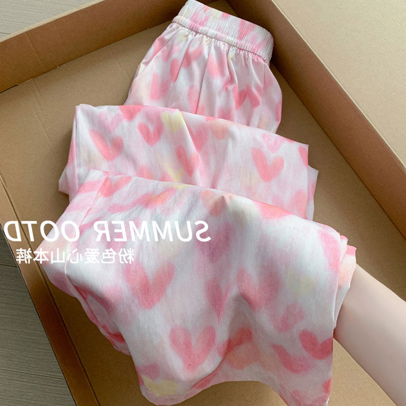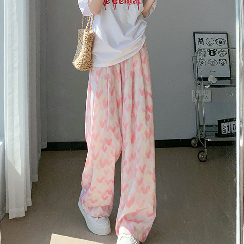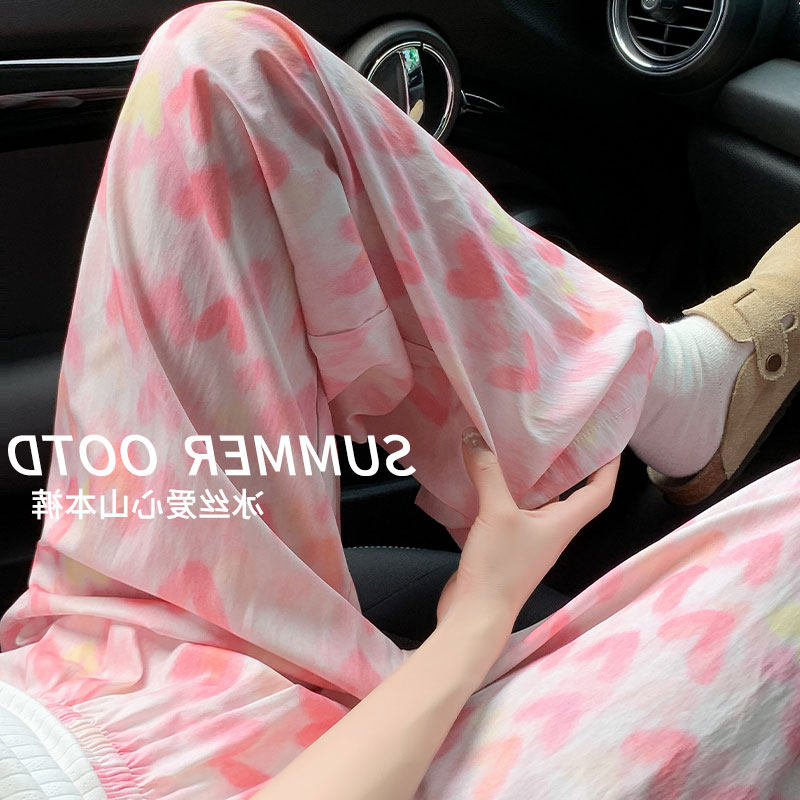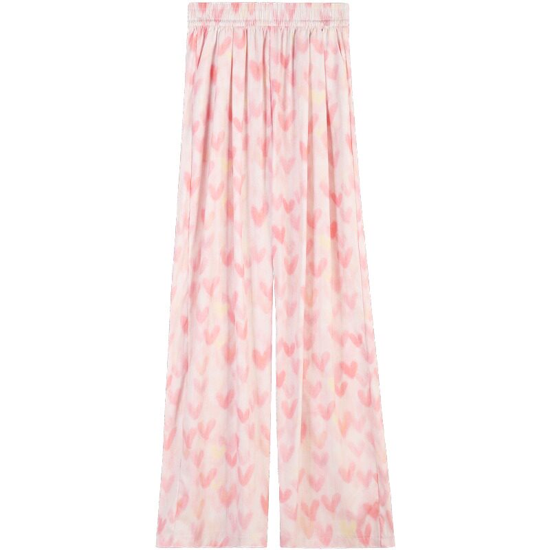 Розовые шелковые тонкие быстросохнущие штаны для отдыха, высокая талия, свободный крой