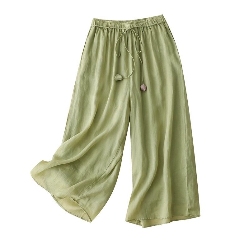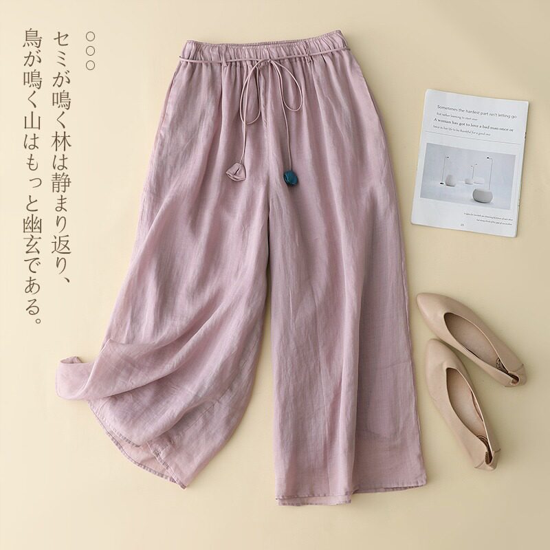 Летние штаны, легкая и тонкая юбка, высокая талия, свободный прямой крой, защита от солнца, из хлопка и льна