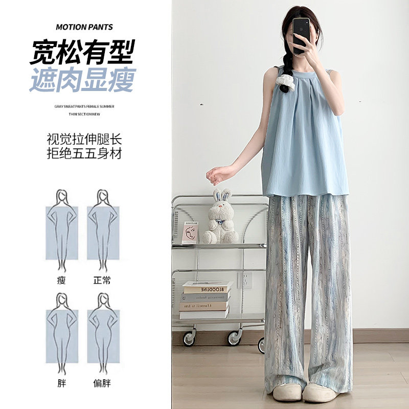 Шелковые штаны для отдыха, высокая талия, свободный прямой крой, по фигуре